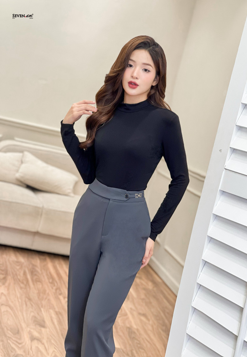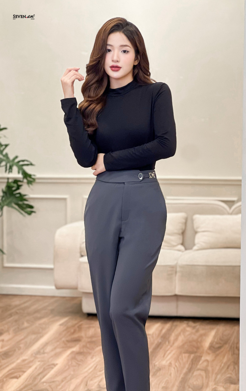 SKU: quần dài xám 2 túi chéo cạp quai trang trí seven.am+s+xam
