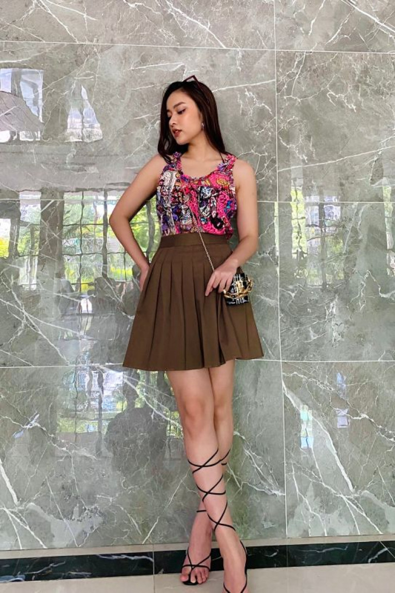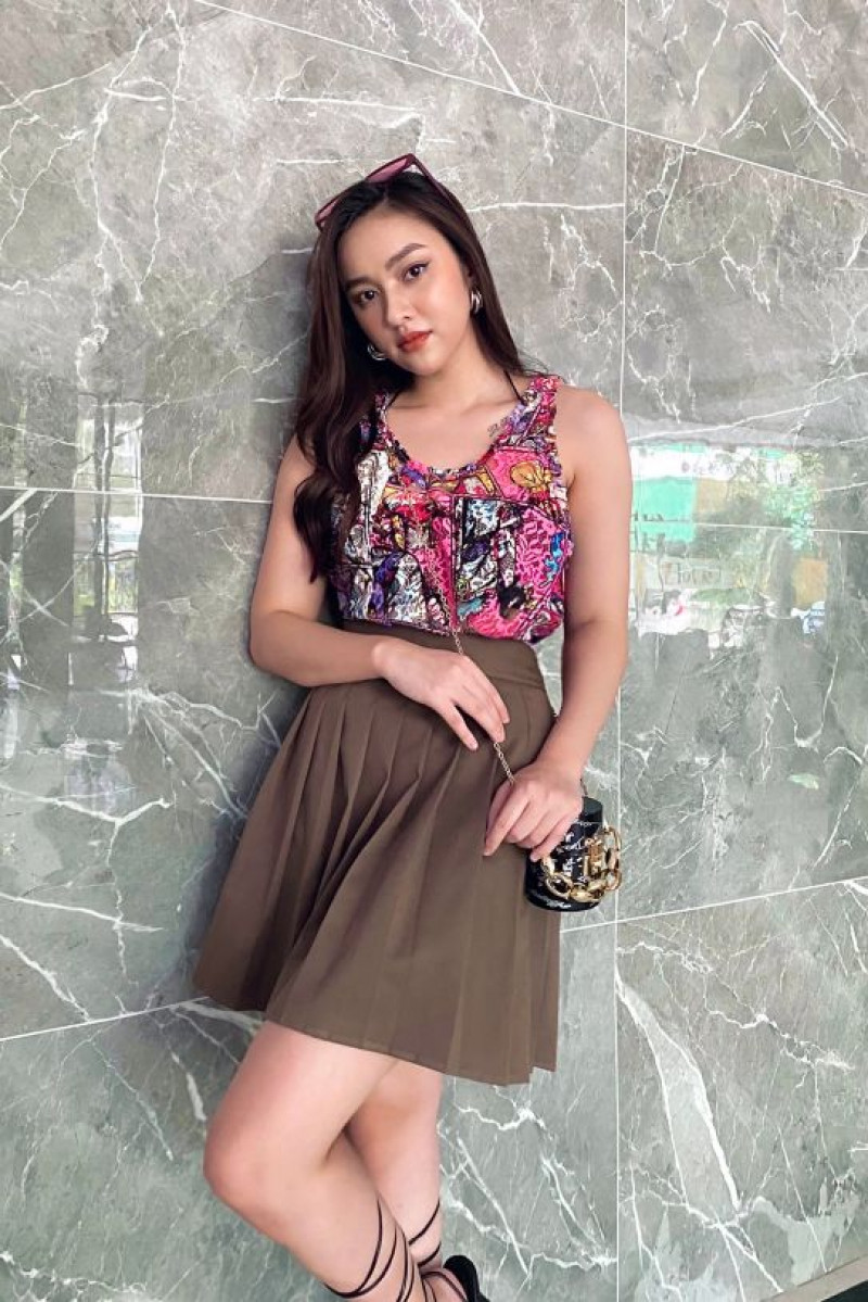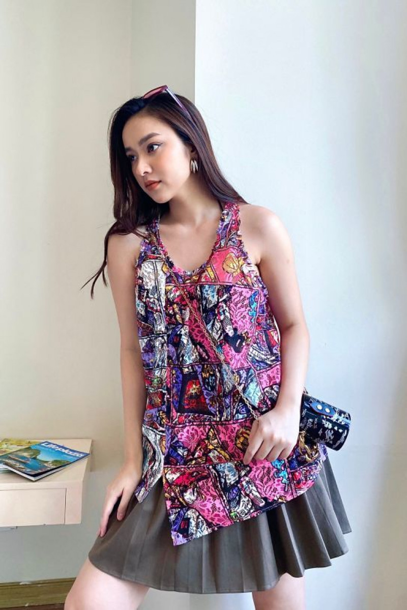 Áo sát nách dáng dài được thiết kế với 2 tà so le lệch nhau. Sản phẩm có áo ống bằng vải cotton đi kèm, phù hợp cho những buổi đi chơi, dạo phố.