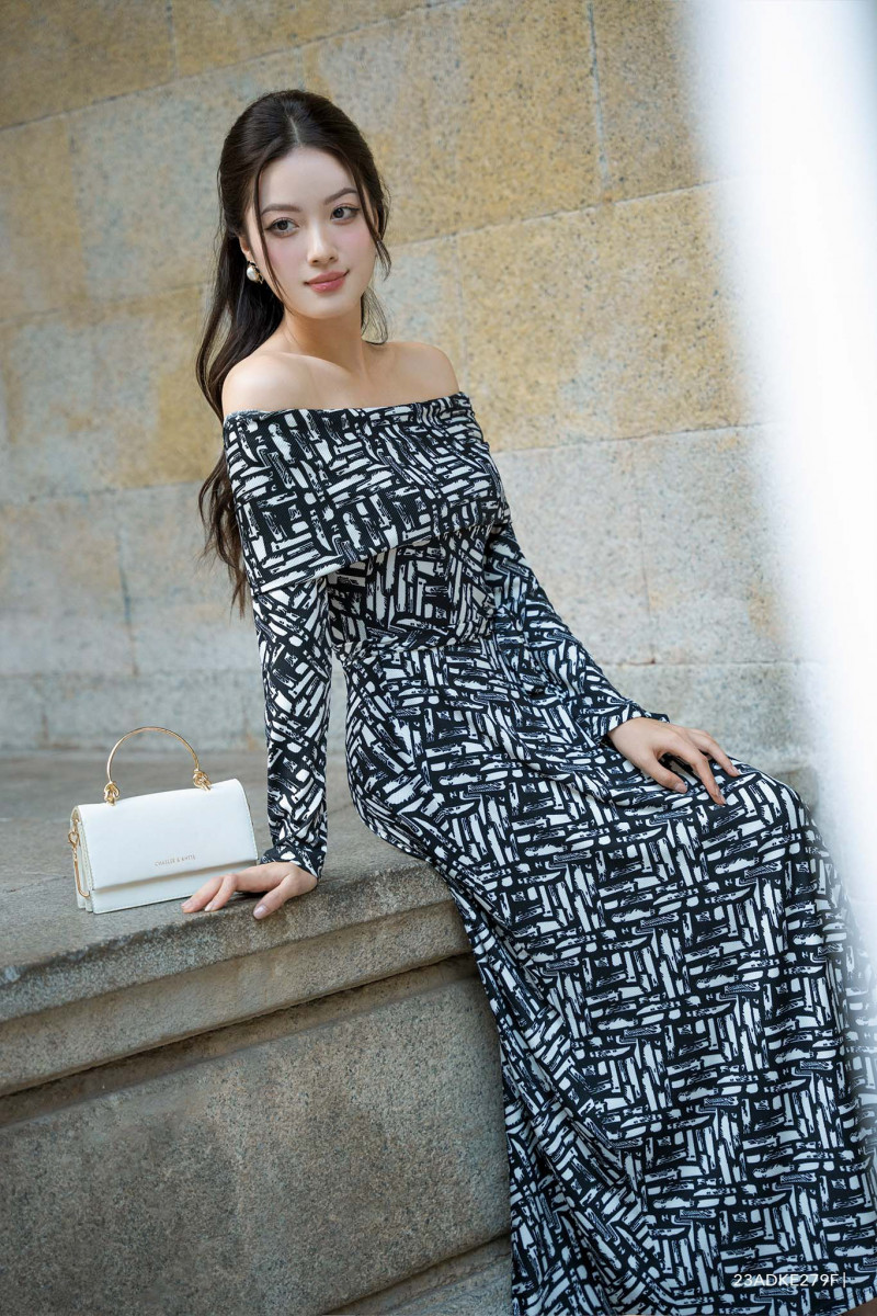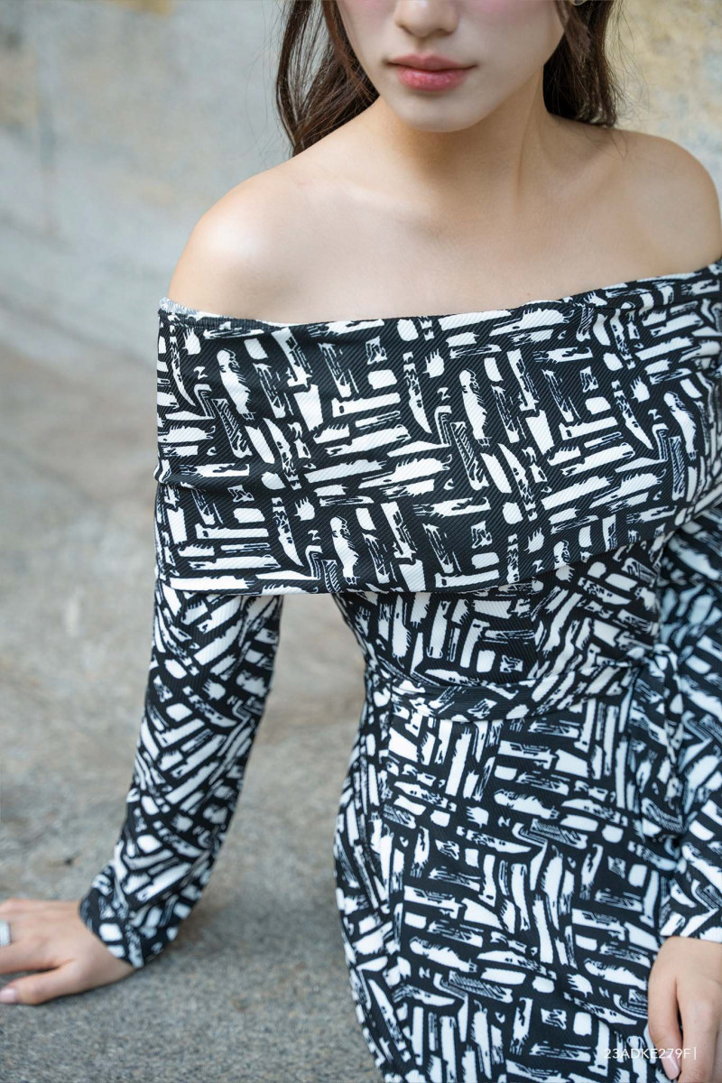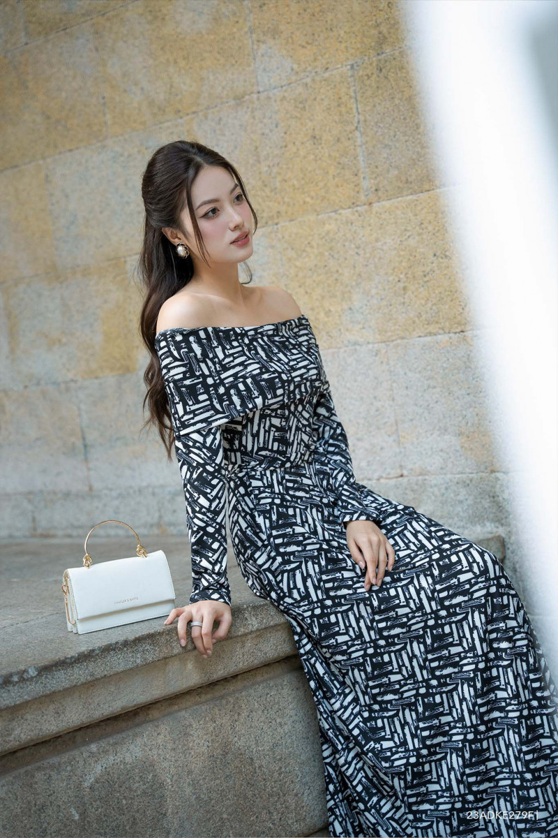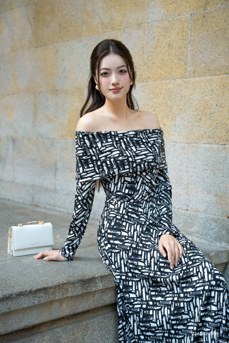 Đầm tay dài, cổ cách điệu, họa tiết nổi bật
