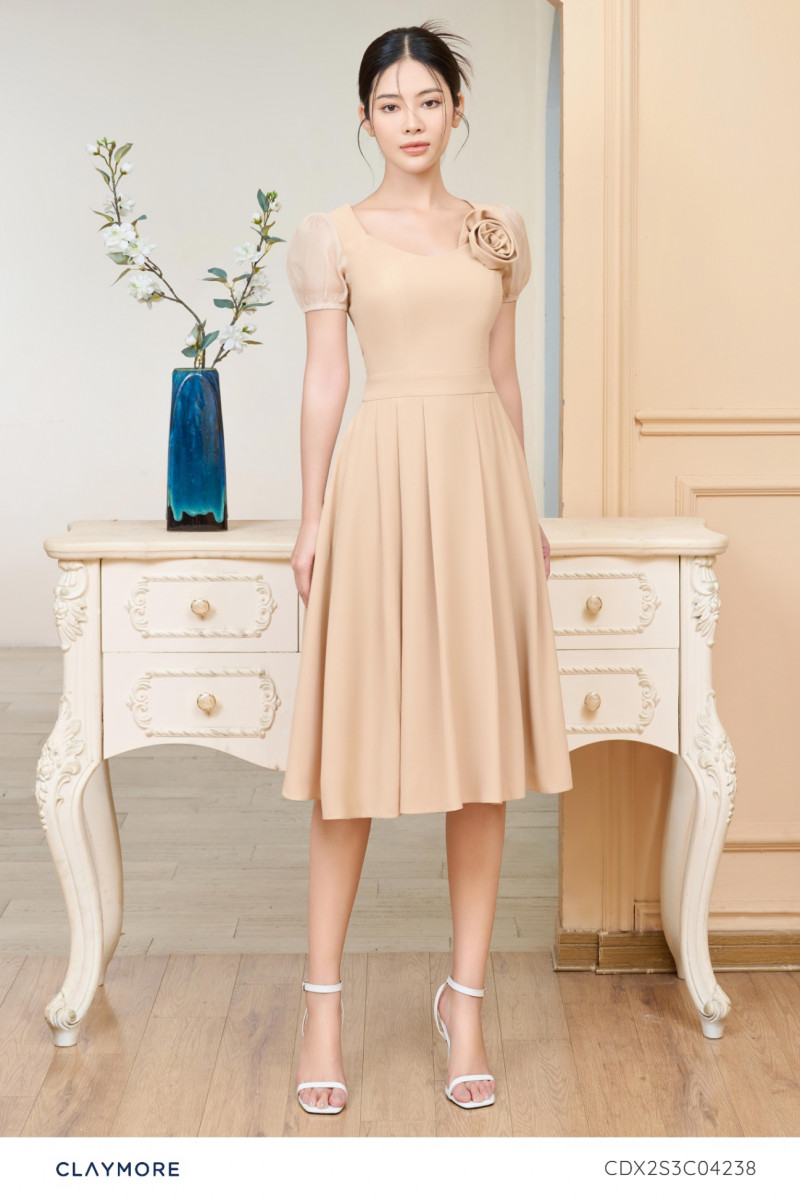 Đầm xòe tay bồng dún-CDX2S3C04238
