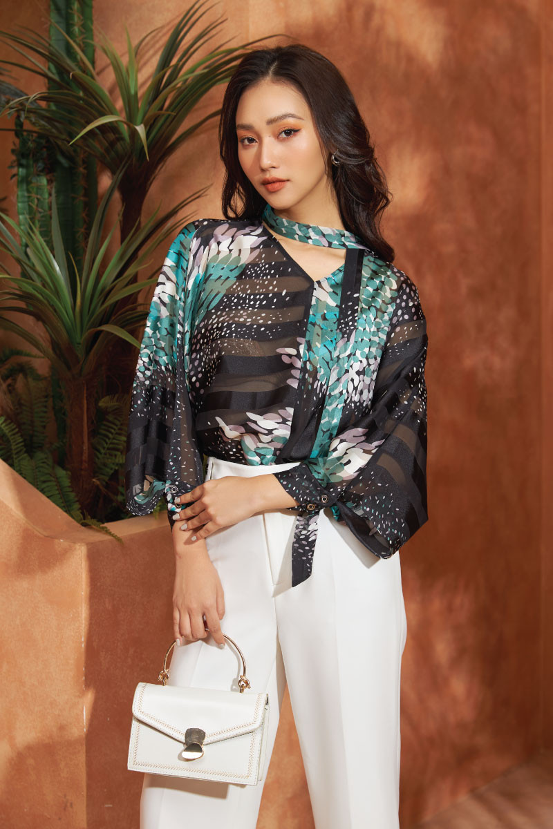 Sơ mi buộc nơ dài tay