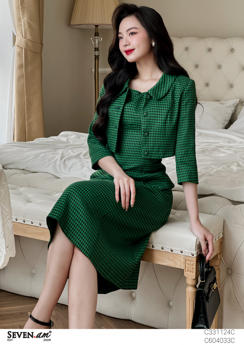 Áo lửng tay lỡ Dạ nanh sói xanh đen cổ sen cài cúc nẹp