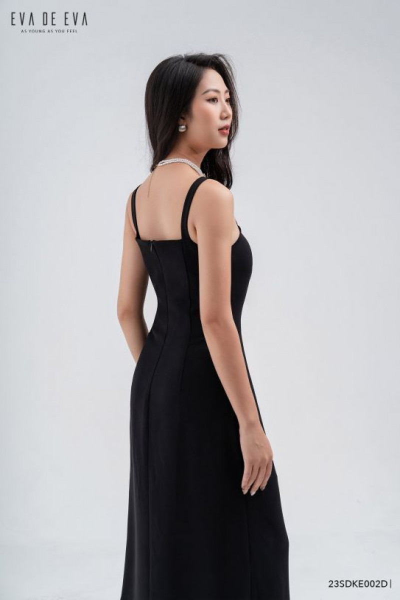 Đầm hai dây, chiết eo tôn dáng, gam màu đen sang trọng Màu sắc: Đen