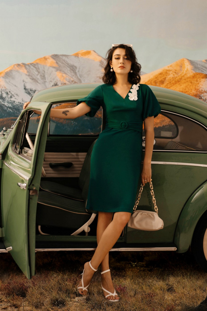 Đầm tay bồng đính hoa cổ-F320W6133C