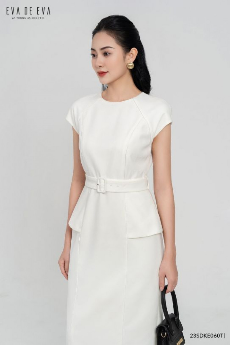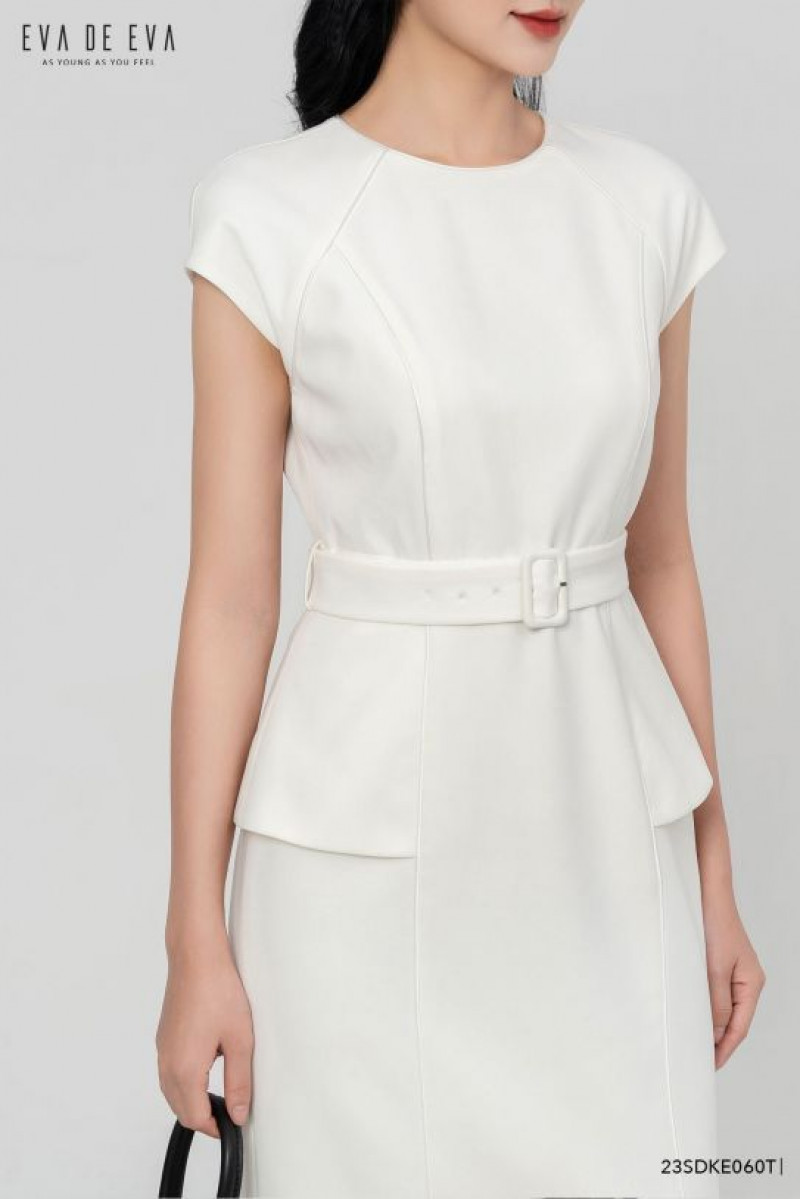 Đầm cổ tròn, dáng peplum, có đai thắt lưng đi kèm