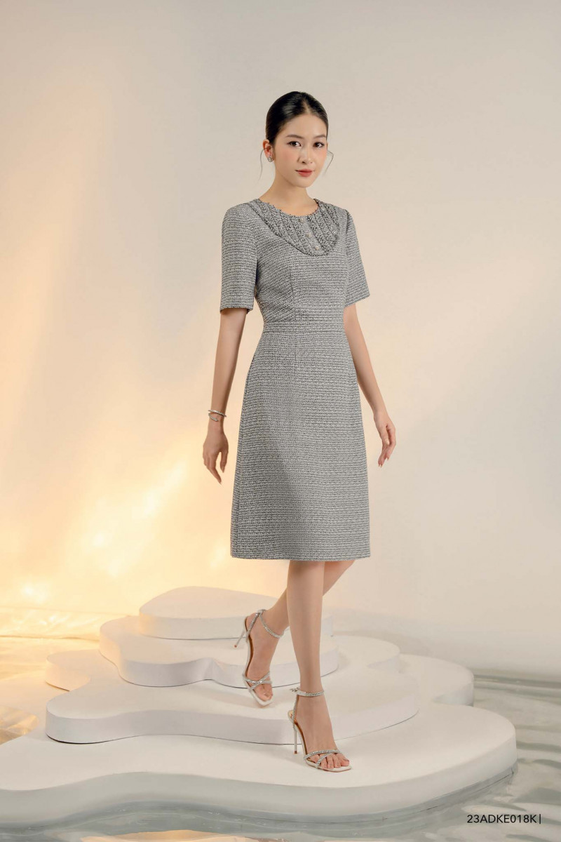 Đầm tay ngắn, Dáng thắt eo 23ADKE018K