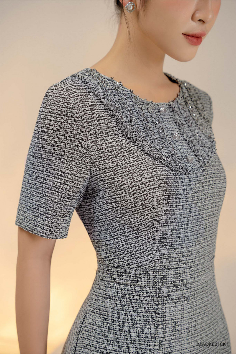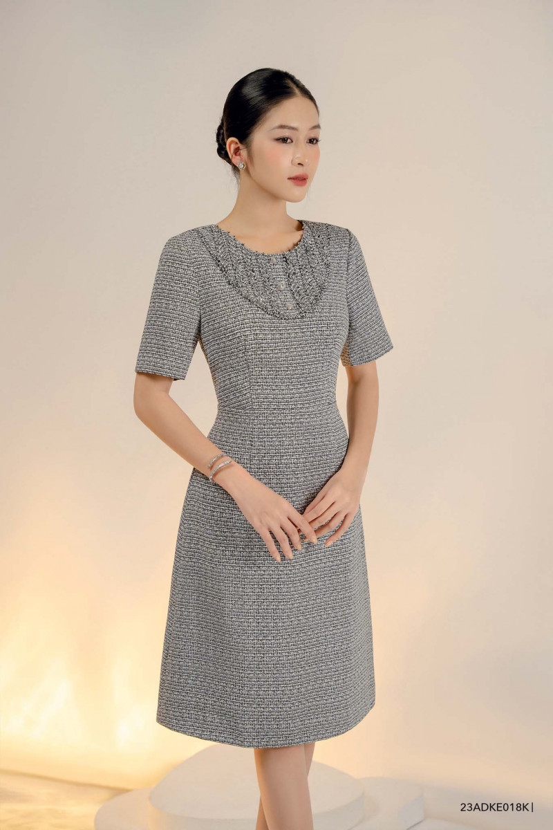 Đầm tay ngắn, cổ phối kiểu cách điệu tinh tế