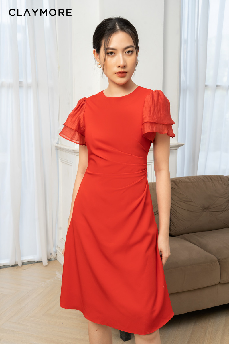 Đầm xếp ly eo tay 2 tầng -CFDAS206431