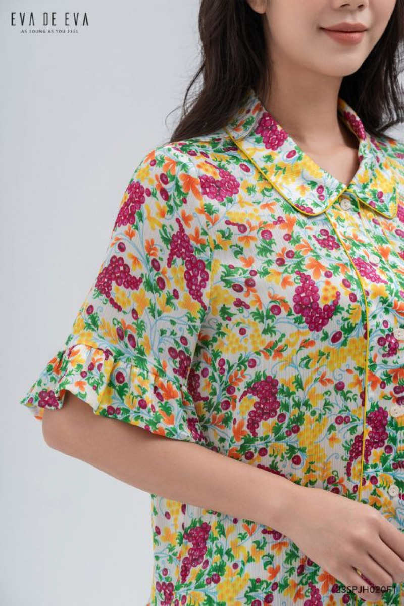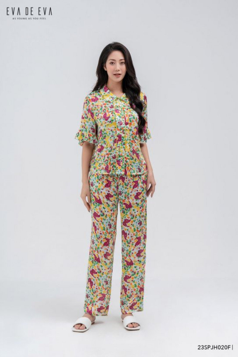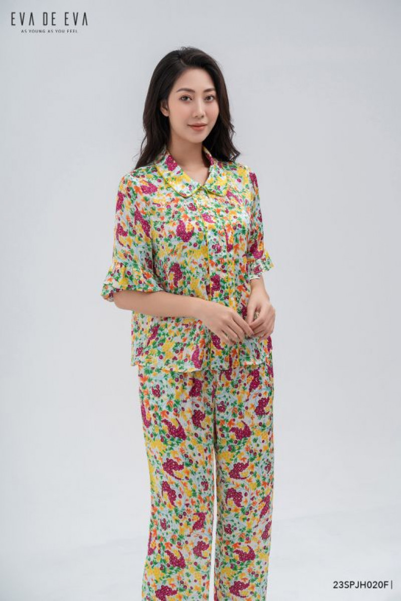 Set Pyjamas phom dáng suông rộng kết hợp họa tiết hoa bắt mắt.Màu sắc: Họa tiết