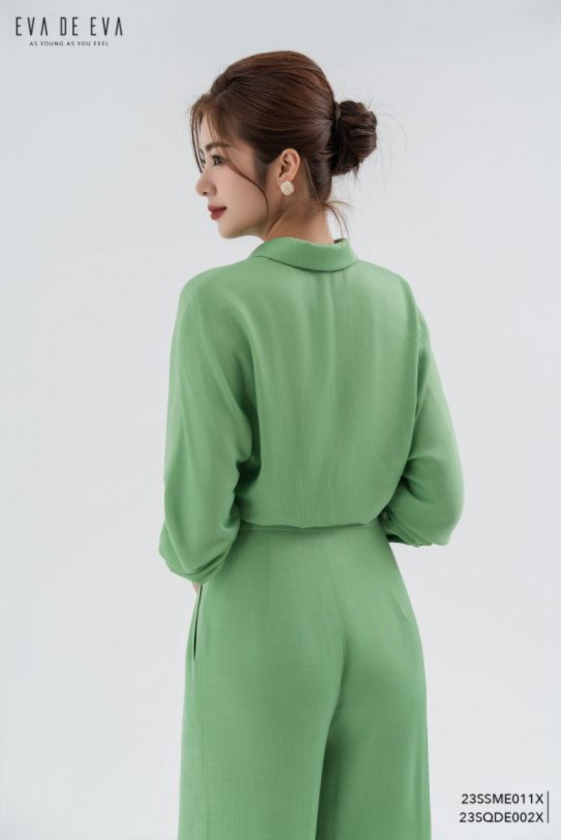 Sơ mi tay dài, gam màu xanh nổi bật, chất liệu lụa mềm mát