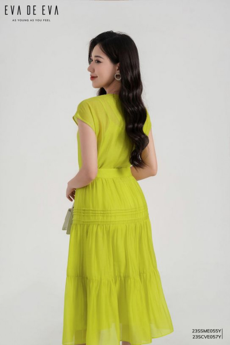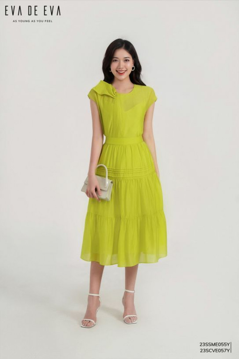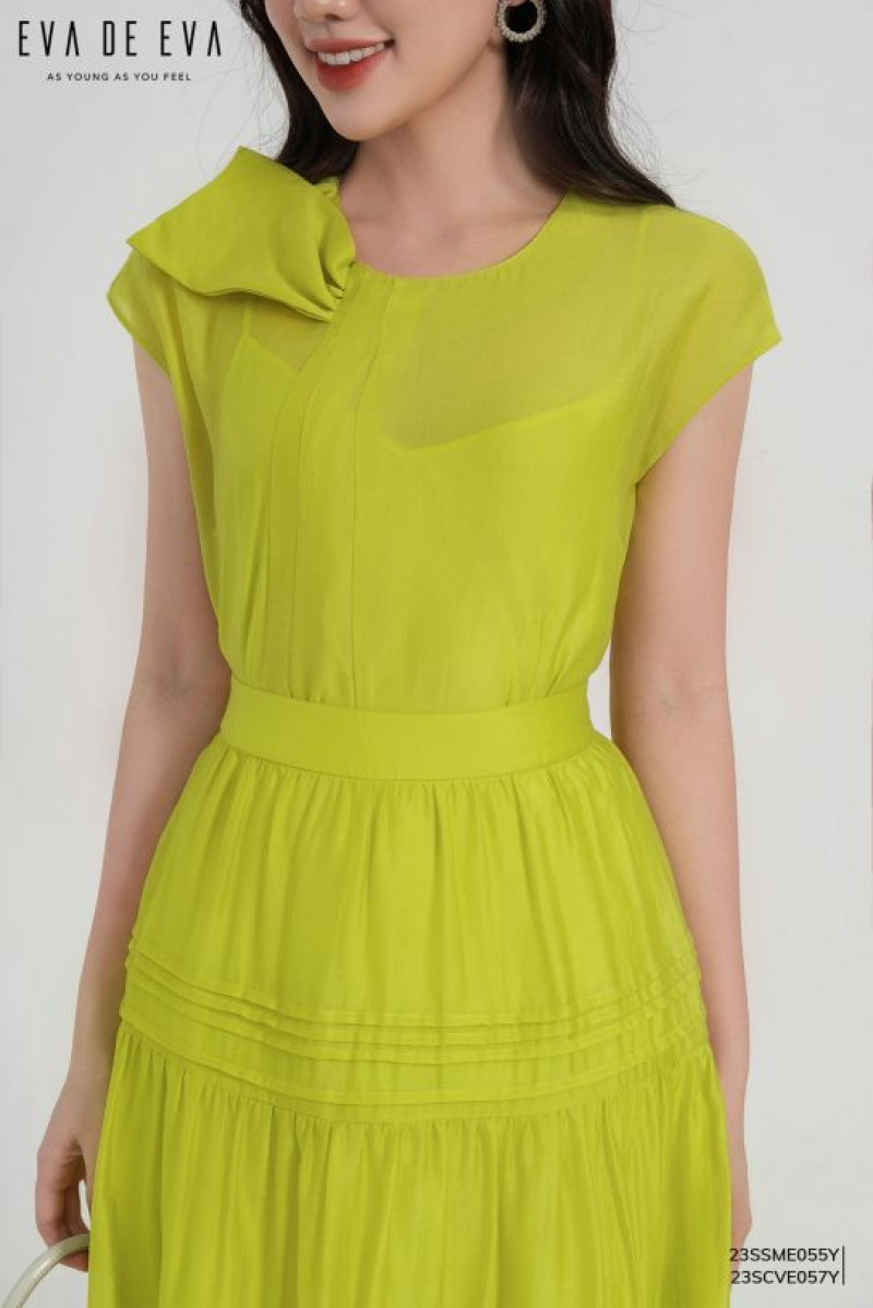 Áo kiểu, tay ngắn, có chi tiết nơ lệch vai nữ tính, tạo điểm nhấn nhẹ nhàng