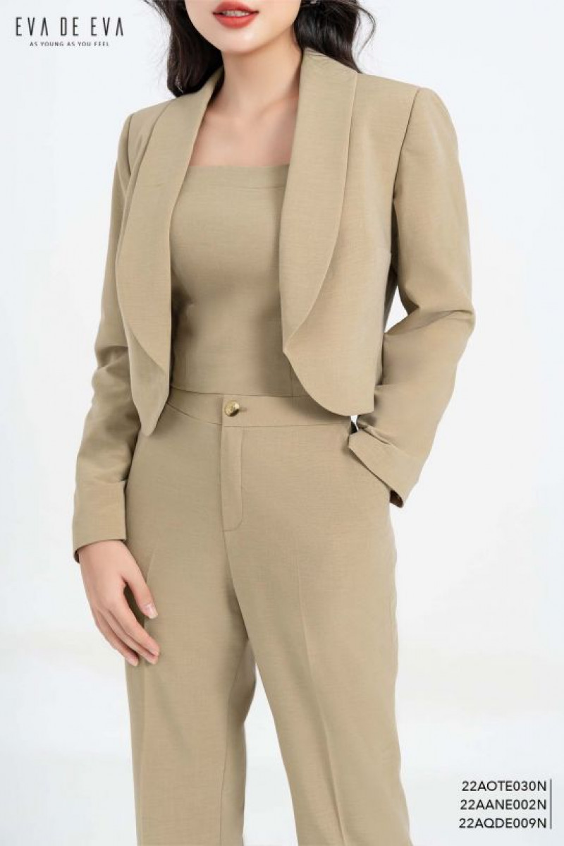Áo kiểu tay dài, phom dáng croptop trẻ trung, có chi tiết cổ bẻ lịch sựMàu sắc: Nâu