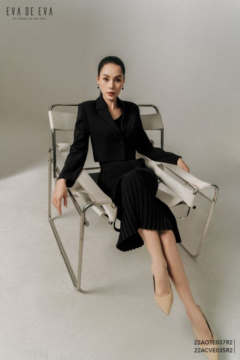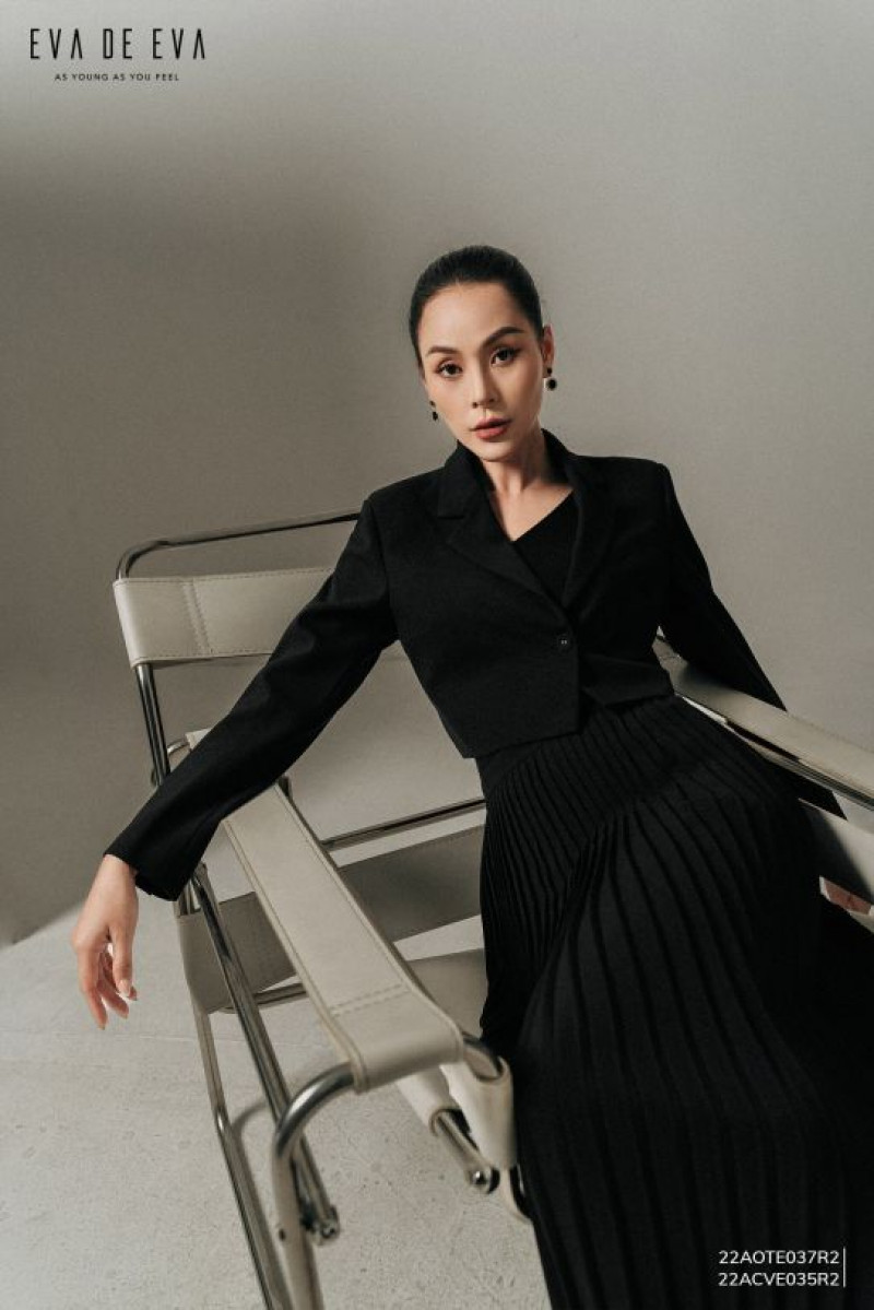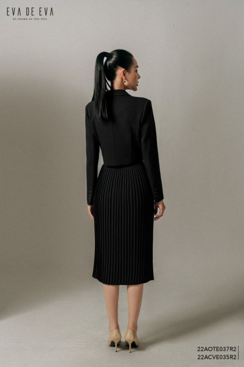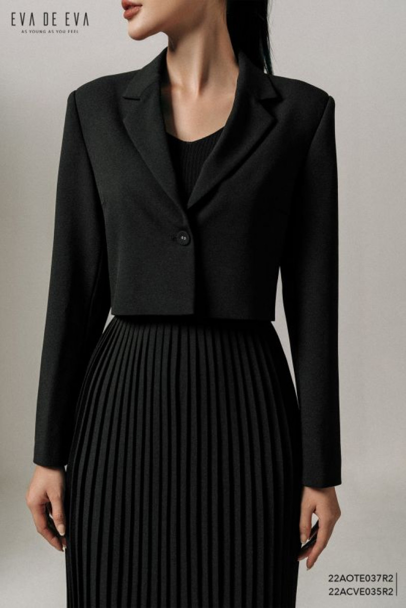 Áo dáng lửng, dáng suông vừa, cổ bẻ 2 ve, tay dài, 2 lớp.