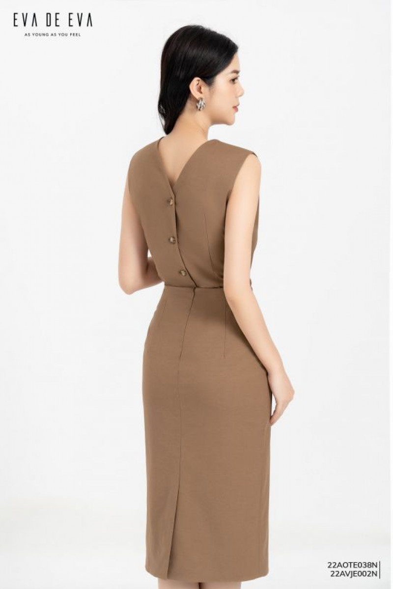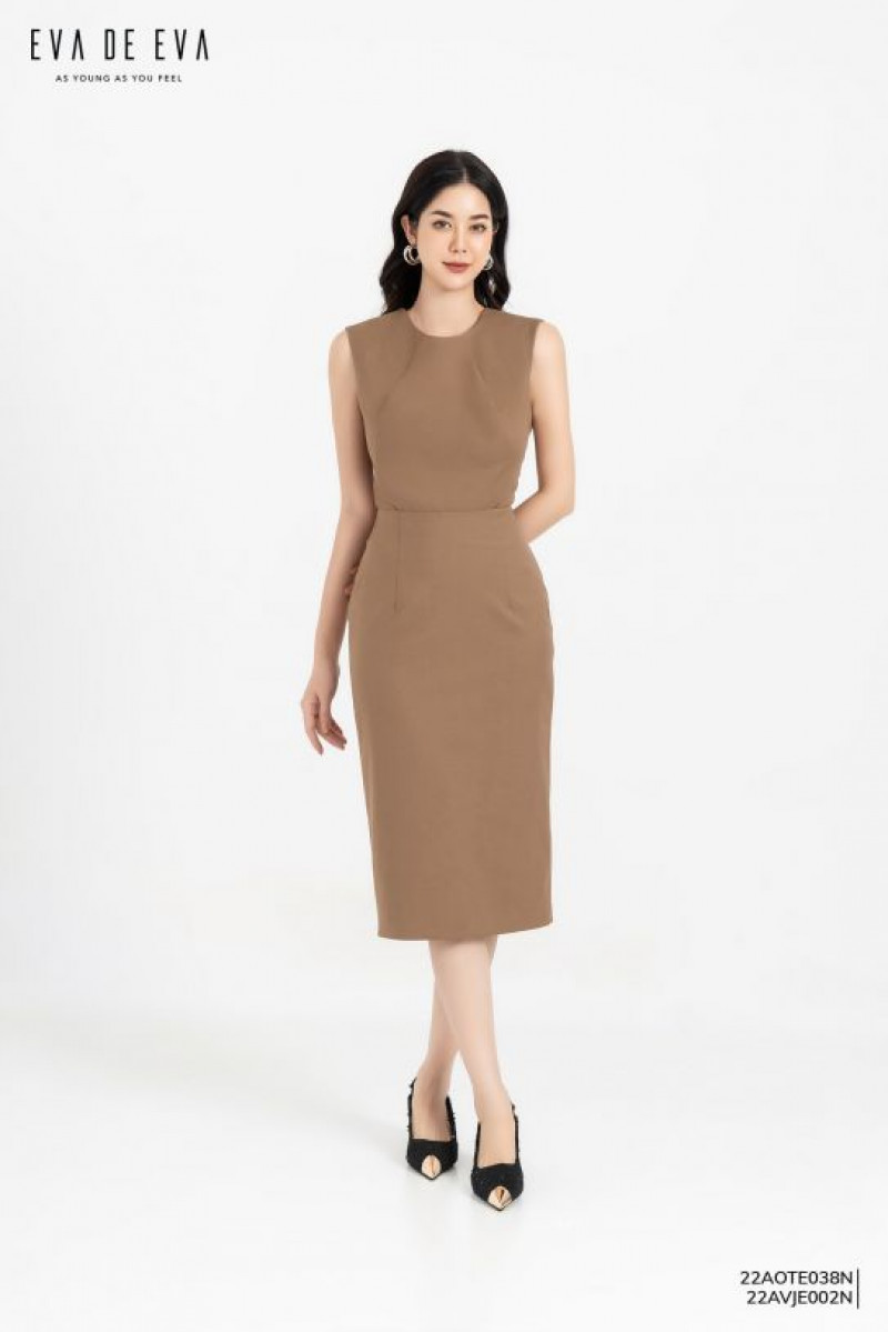 Áo sát nách cổ tròn, dáng ôm màu nâu Màu sắc: Nâu
