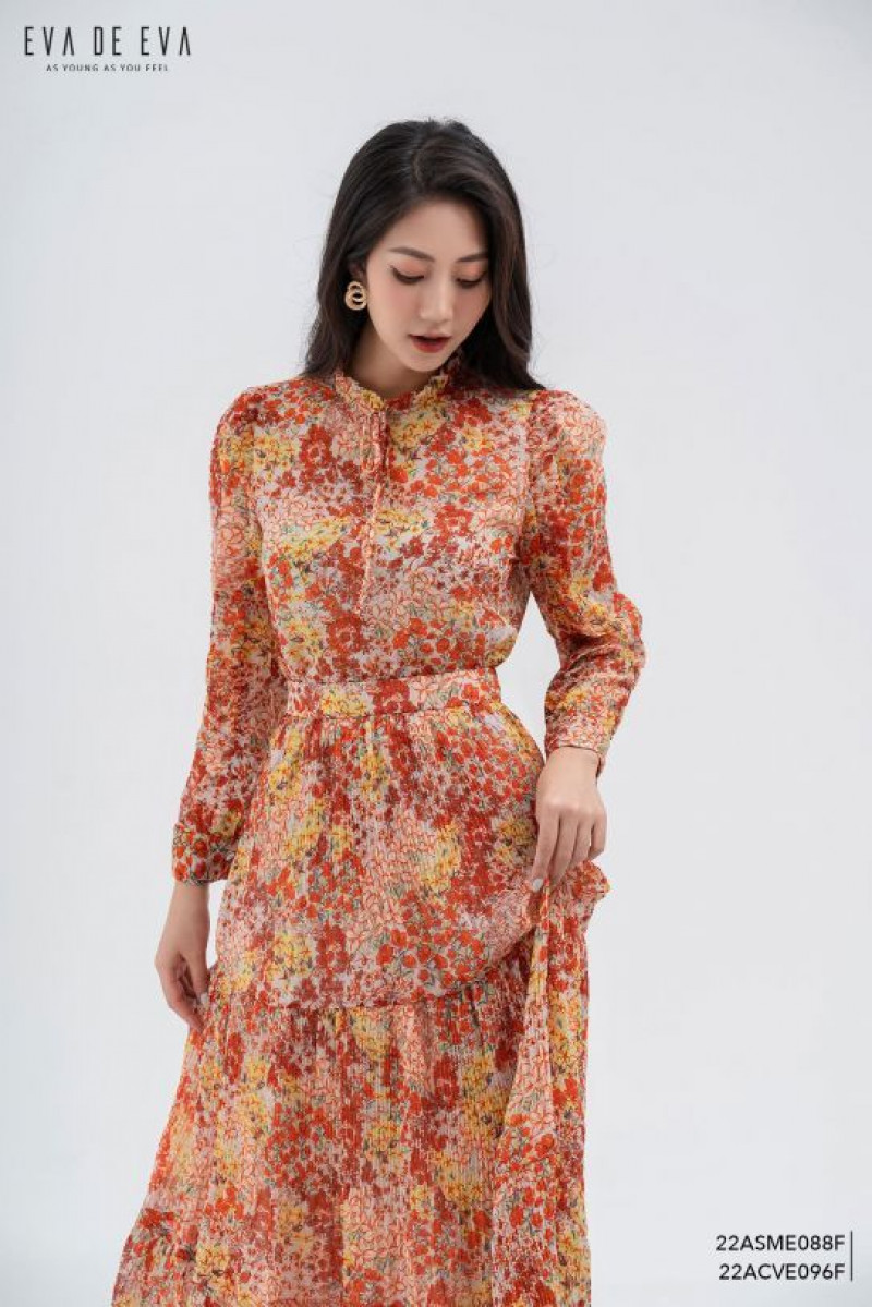 Sơ mi tay dài, dáng sơ vin, họa tiết hoa, cổ thắt nơ.Màu sắc: Họa tiết: