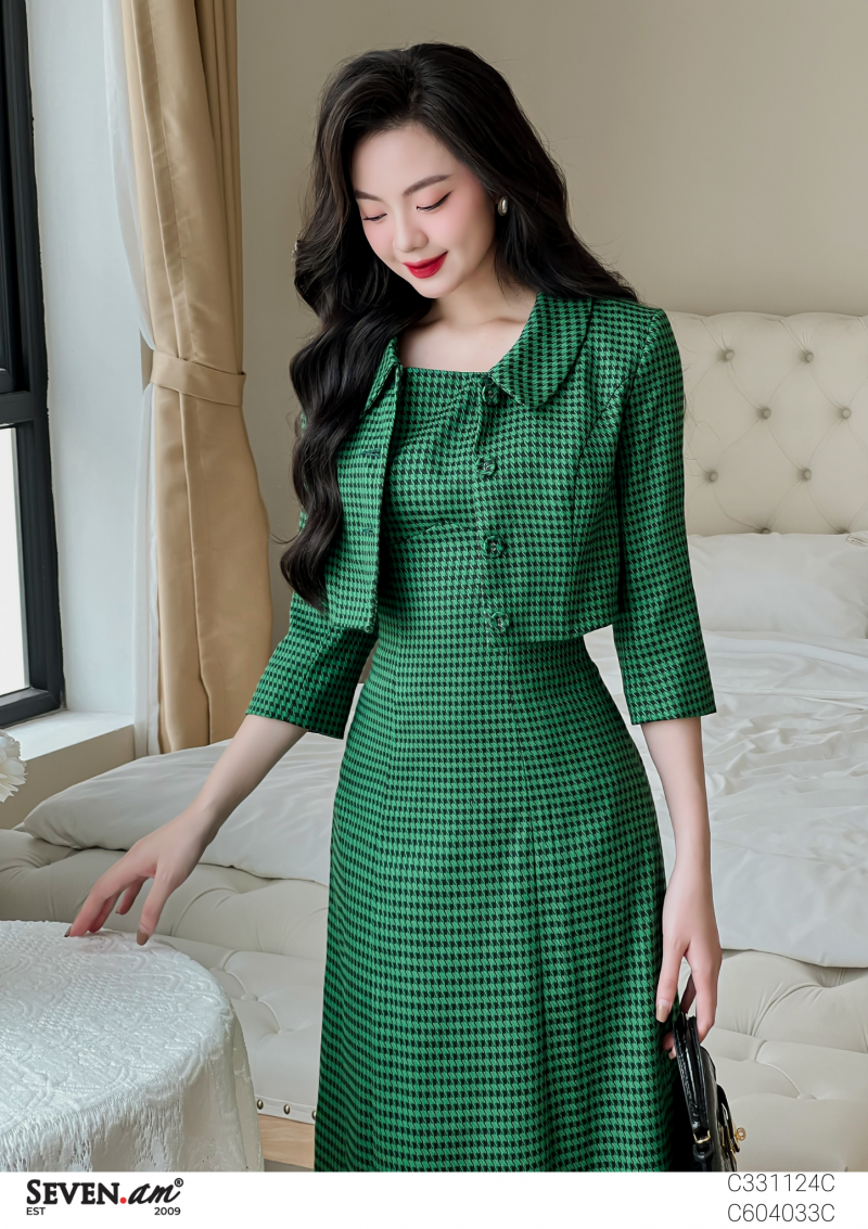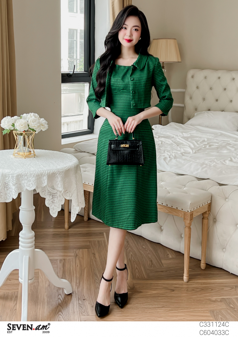 115 Đầm A 2 dây bản to sát nách Dạ nanh sói xanh đen cổ U chắp TT