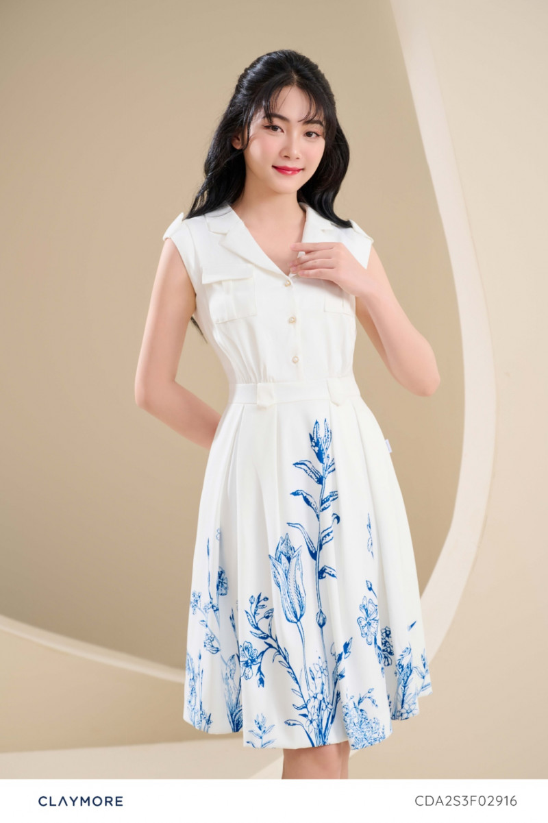 Đầm cổ đức in họa tiết