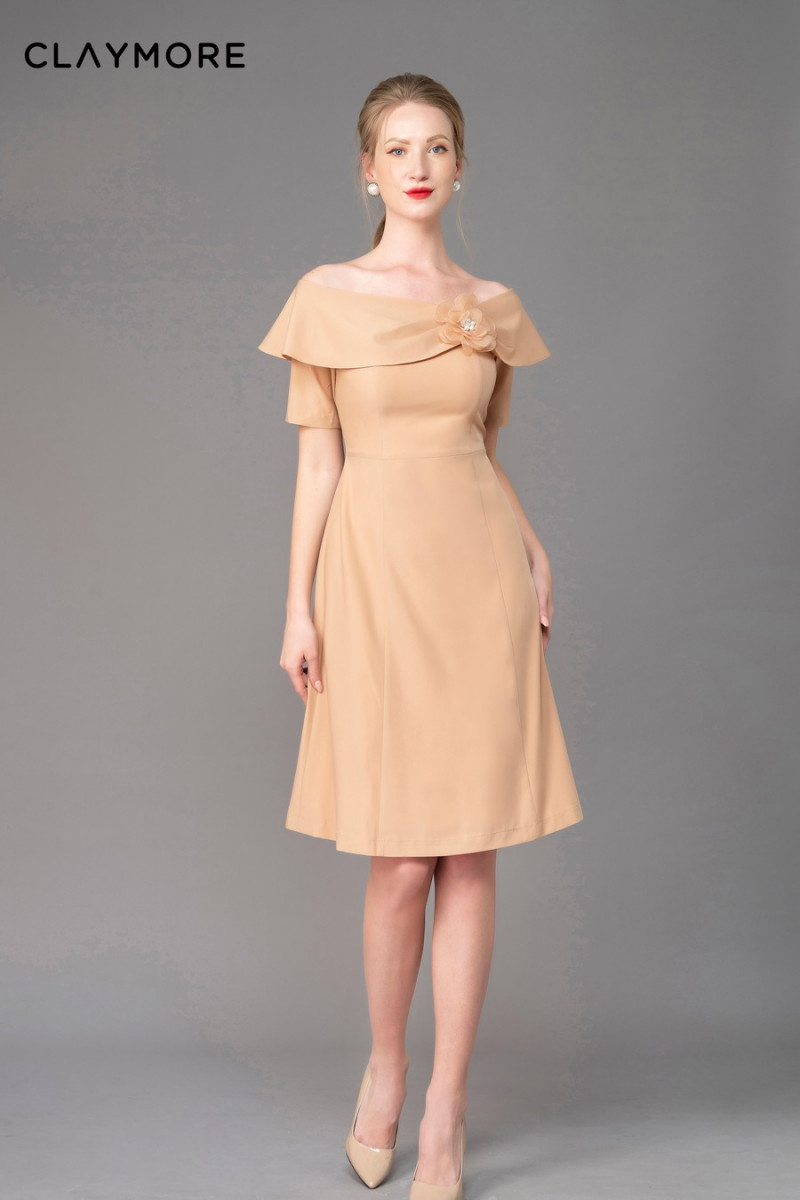Đầm trễ vai hoa cài ngực-F320W12039Y