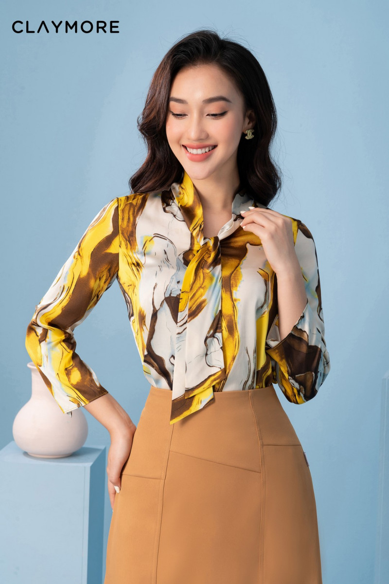 Sơ mi họa tiết nơ cổ