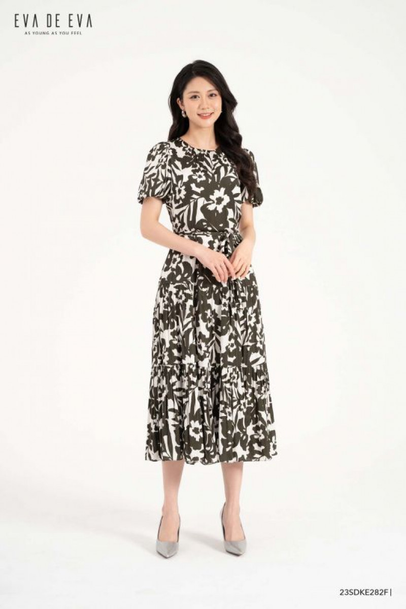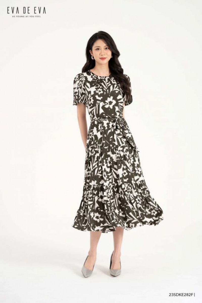 Đầm tay ngắn, họa tiết hoa văn độc đáo, chất liệu lụa mềm mại cho mùa hè