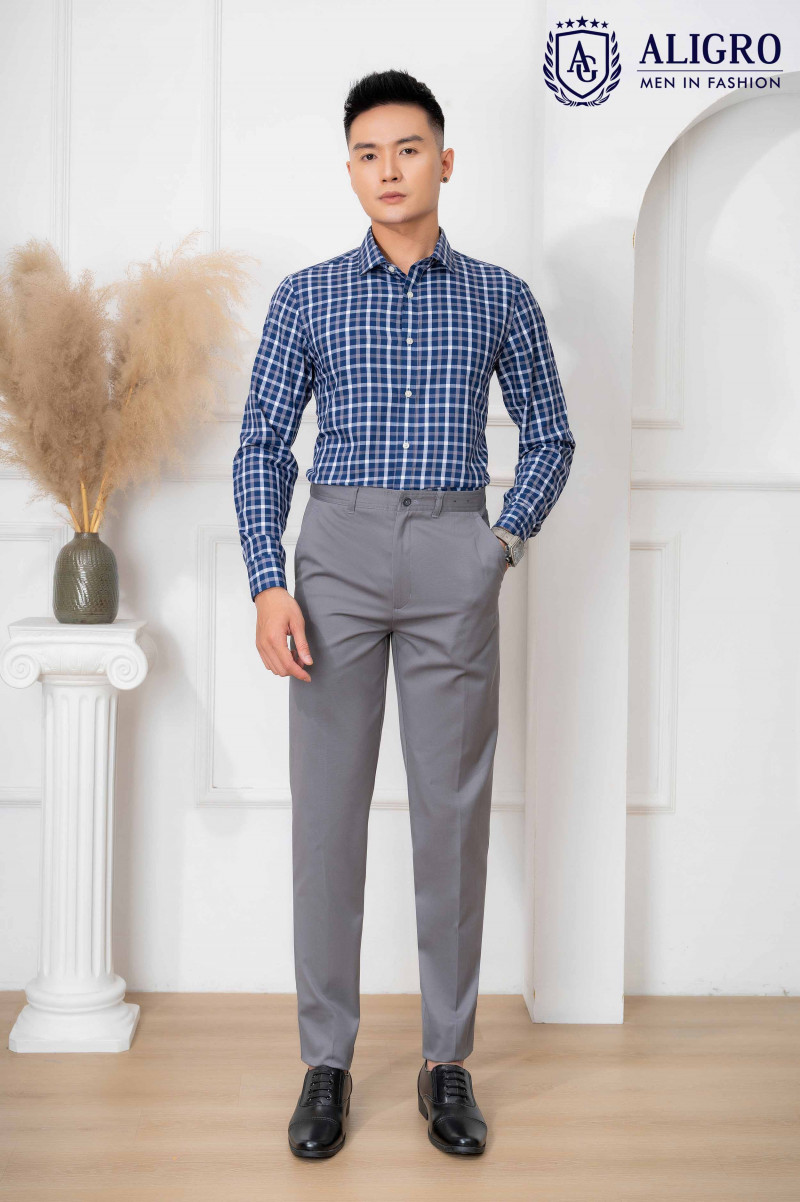 Quần kaki nam ALIGRO chất liệu kaki mềm mịn cao cấp dáng slimfit màu xám ALGK069