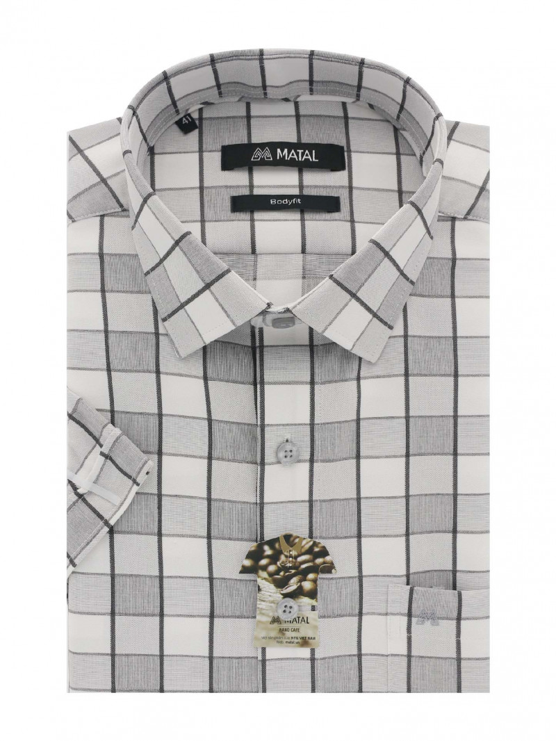 - Áo thiết kế họa kẻ ô ghi trắng tinh tế, ấn tượng, mang đến phong cách thời thượng và lịch lãm cho các quý ông.