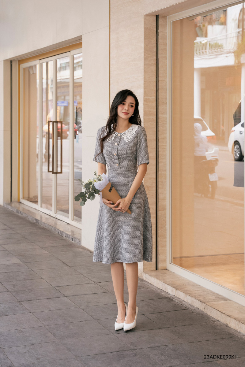Đầm tay ngắn, Dáng thắt eo 23ADKE099K