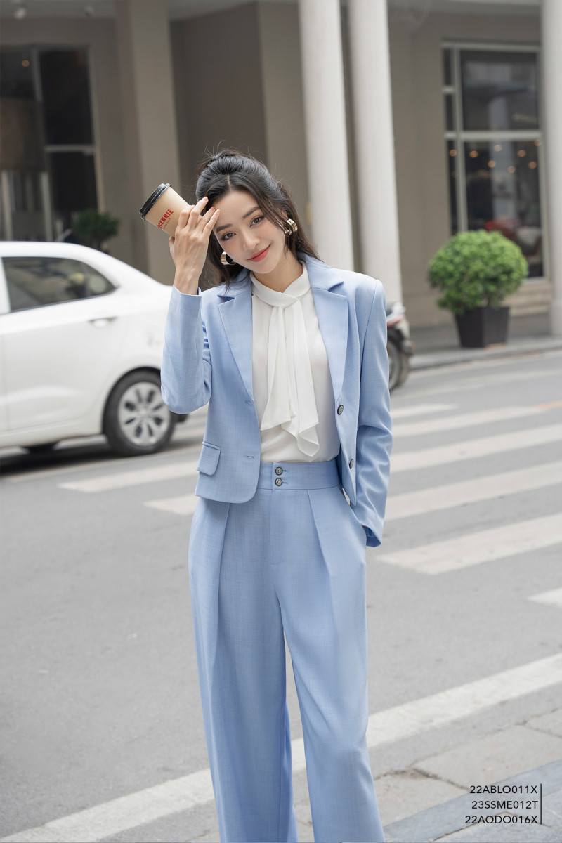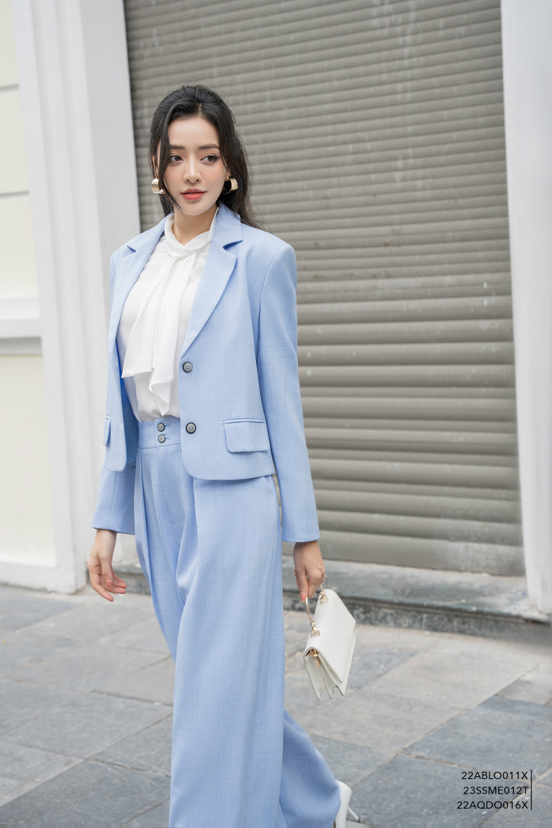 Blazer phom dáng lỡ, cổ bẻ lật, tay dài, có chi tiết túi tiện dụng.