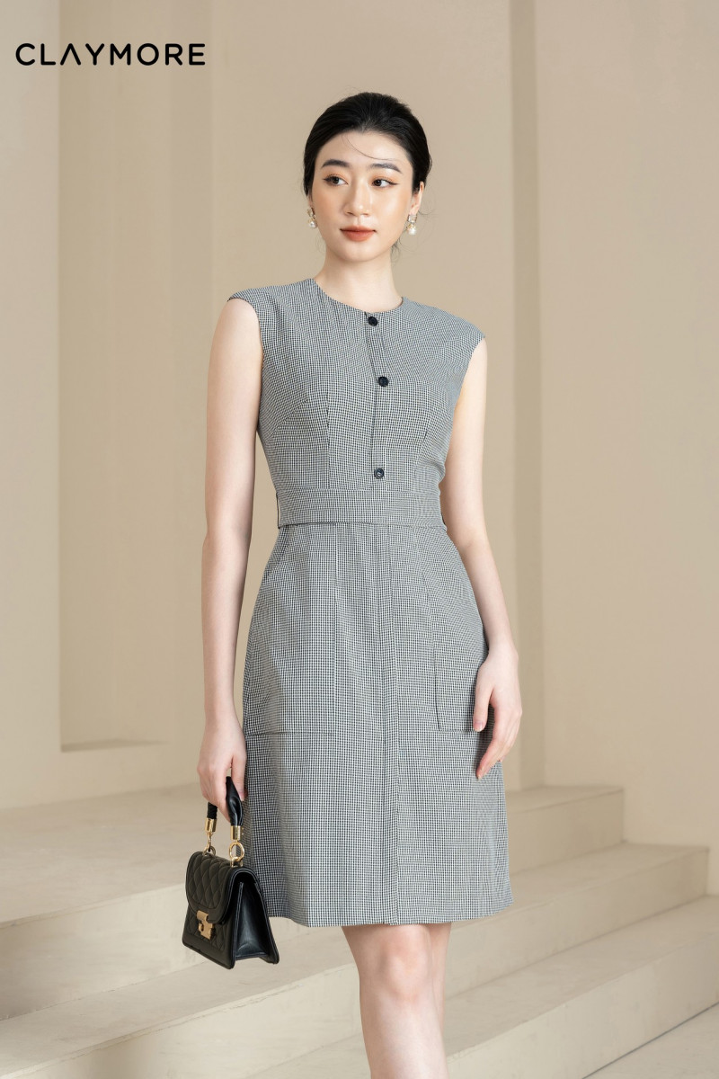 Đầm kẻ dáng A vai chờm