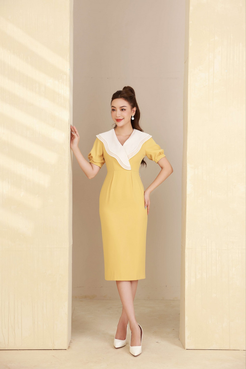Đầm ôm cổ 2 lá