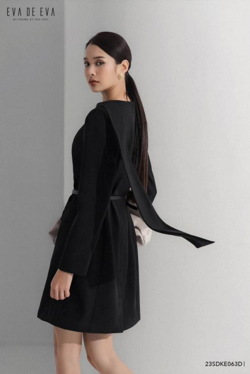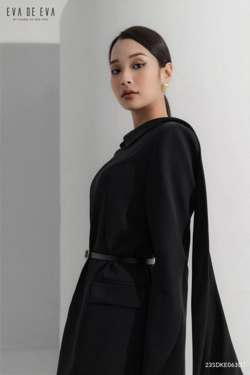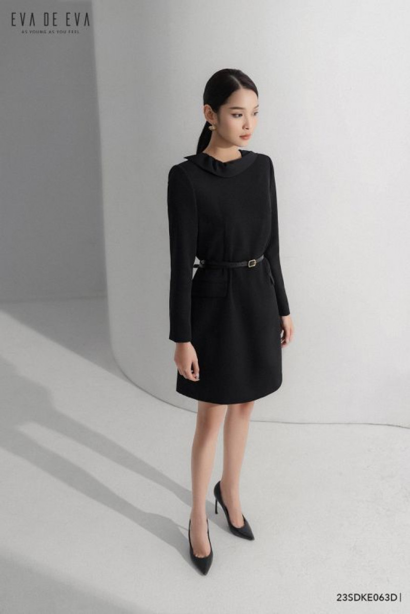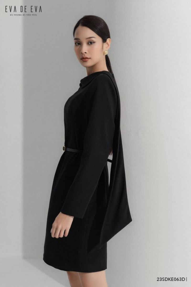Đầm tay dài, chi tiết khăn cổ tạo điểm nhấn, có thắt lưng đi kèm