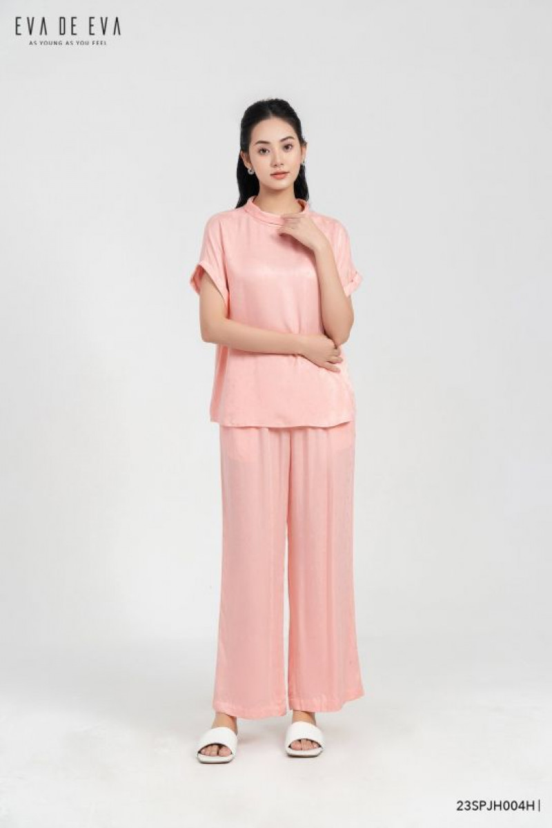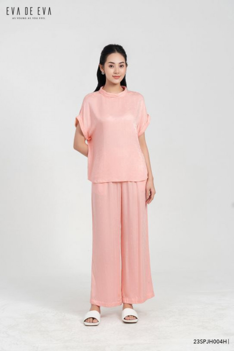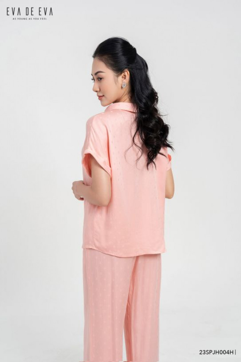 Set pyjamas, phom dáng suông rộng thoải mái, tay cộc, chất liệu lụa mềm mại.