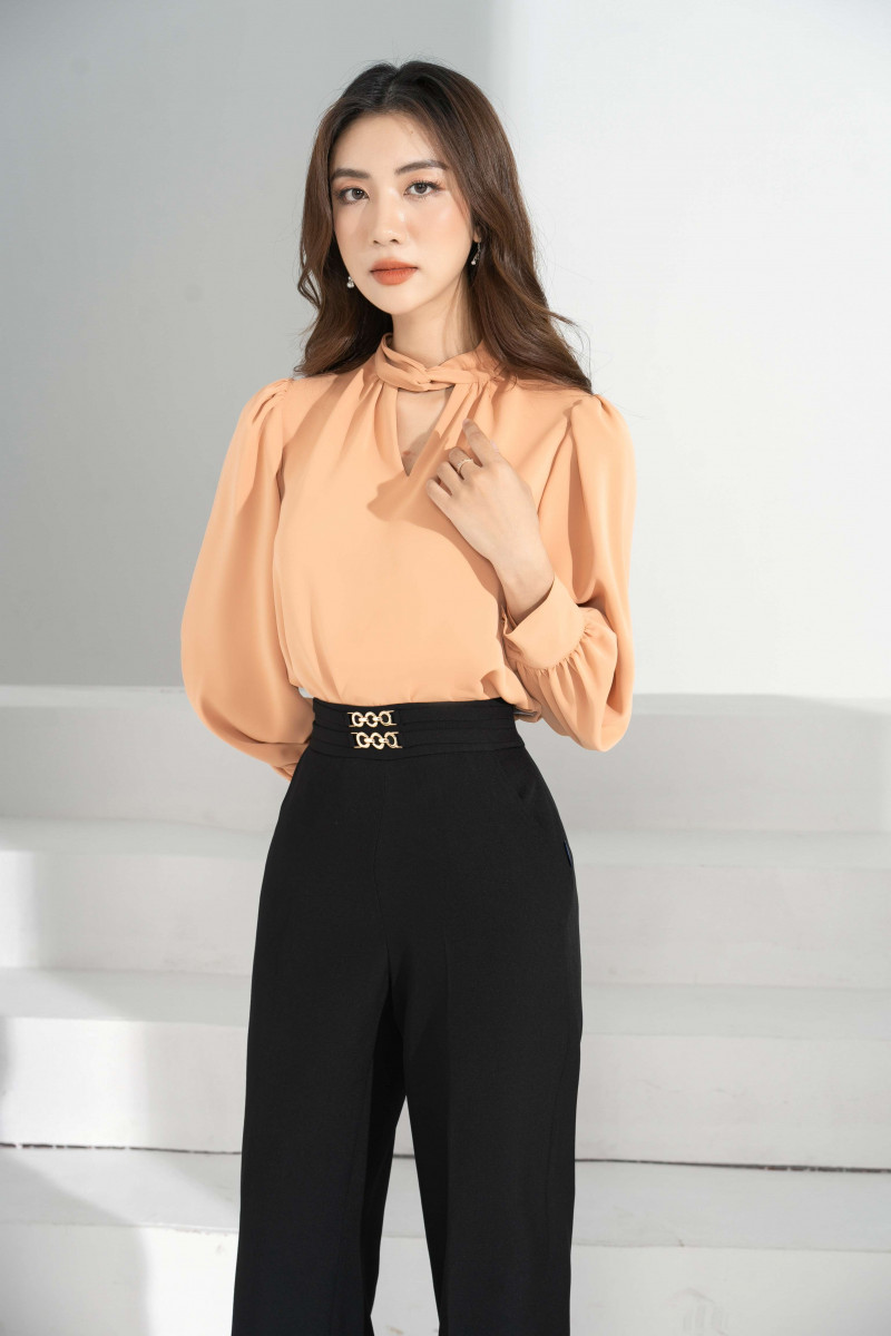 Sơ mi rúm cổ xẻ vê
