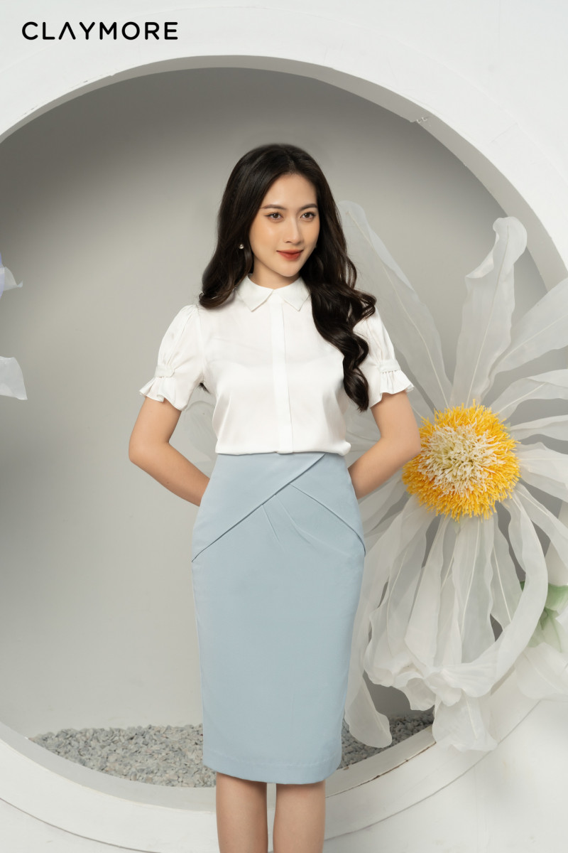 Sơ mi suông cổ đức tay rúm-CFSCS206026