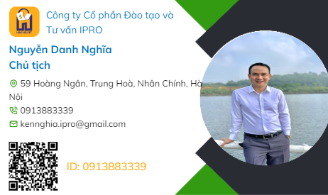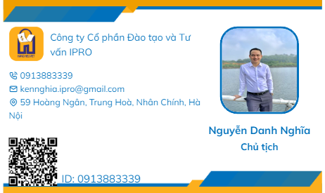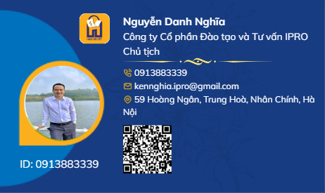 Công ty Cổ phần Đào tạo và Tư vấn IPRO, viết tắt của "Inspire and Propel for Results Optimization" (Tư vấn và Thúc đẩy tối ưu hóa kết quả), là một công ty hàng đầu trong lĩnh vực đào tạo và tư vấn doanh nghiệp. Với cam kết mang đến sự phát triển cho cá nhân và tổ chức, IPRO đã xây dựng một danh tiếng vững chắc và trở thành đối tác đáng tin cậy của nhiều doanh nghiệp.