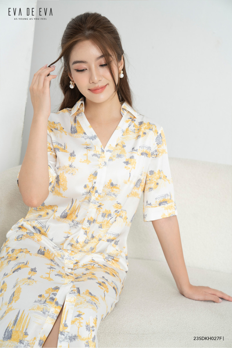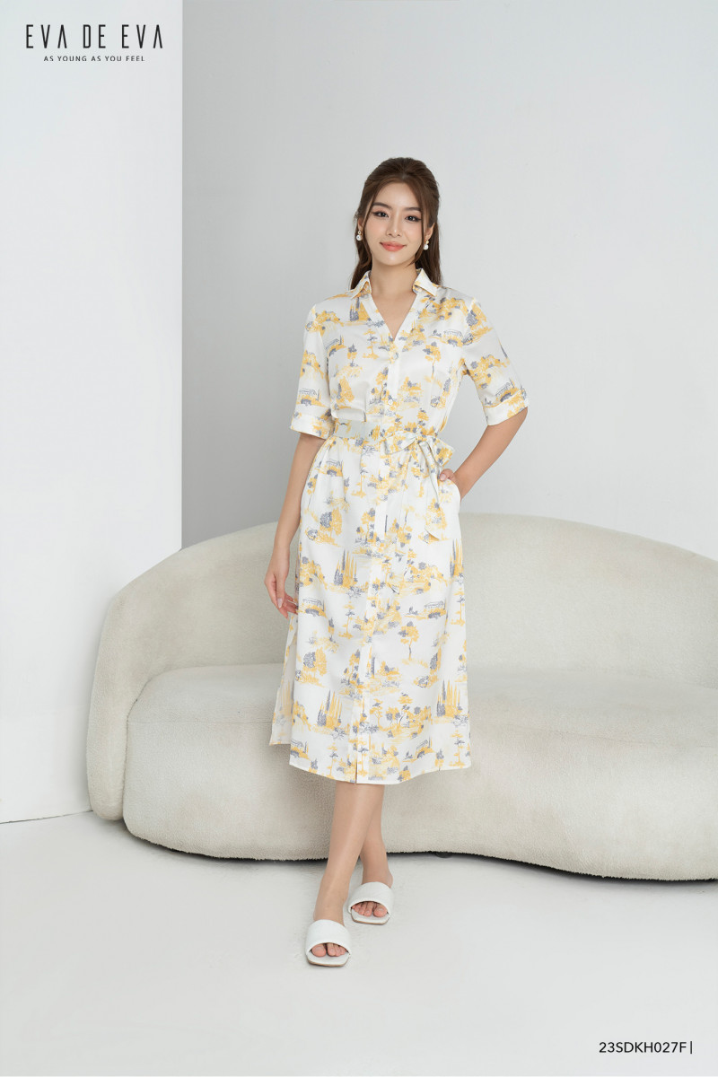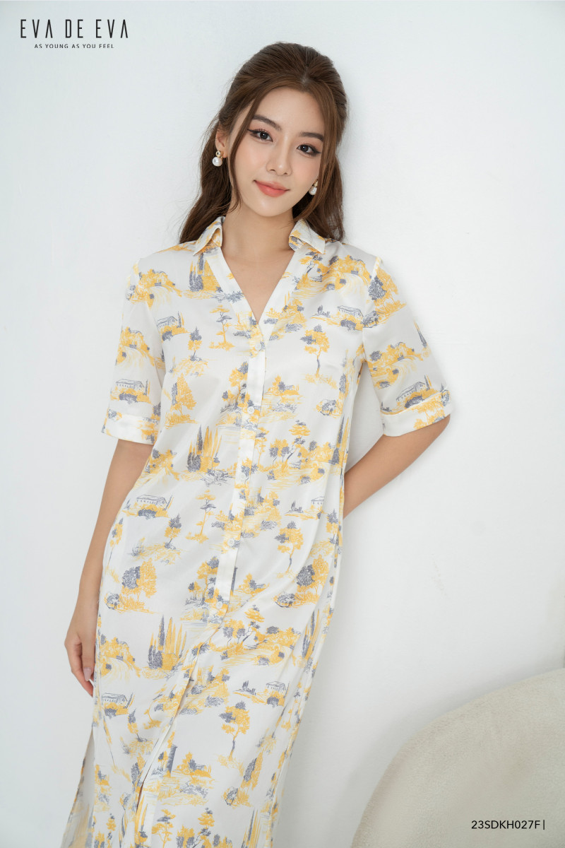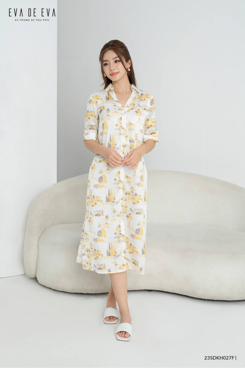 Đầm tay ngắn, dáng suông thoải mái, họa tiết độc đáo