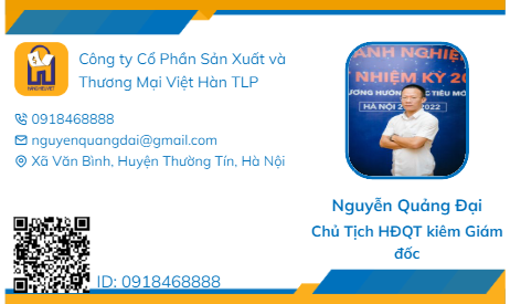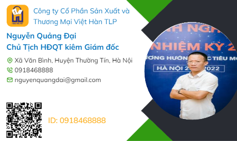 CEO Nguyễn Quảng Đại sinh ngày 10/08/1983 tại Thường Tín, Hà Nội, là một doanh nhân tâm huyết đặc biệt đối với lĩnh vực sản xuất, kinh doanh bông, xơ sợi, thảm. Hiện anh đang là Chủ Tịch HĐQT kiêm Giám đốc Công ty Cổ Phần Sản Xuất và Thương Mại Việt Hàn TLP