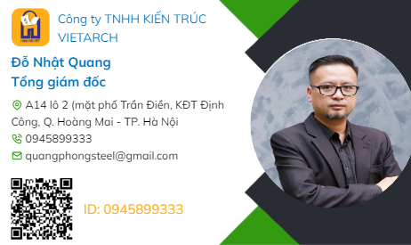 Công ty TNHH Kiến trúc VietArch là đơn vị có tư cách pháp nhân đầy đủ, hạch toán kinh tế độc lập. Công ty luôn thay đổi, sáng tạo để không ngừng phát triển, tạo ra những công trình ngày càng hoàn hảo hơn và bền vững với thời gian. Qua chặng đường phát triển với nhiều dự án thực tế đã thực hiện, VietArchitect & QuangPhong Steel ngày càng nhận được sự tin tưởng của nhiều đối tác khách hàng. Uy tín và vị thế trên thị trường ngày càng được nâng cao. Những công trình do VietArchitect & QuangPhong Steel thực hiện luôn đảm bảo chất lượng tốt và hoàn thành vượt tiến đồ đề ra. Đội ngũ kiến trúc sư, kỹ sư của VietArchitect & QuangPhong Steel đều có trình độ đại học trở lên và đã có kinh nghiệm thực tế với nhiều công trình có quy mô lớn thuộc các lĩnh vực như: Công trình dân dụng, công trình công nghiệp và hạ tầng kỹ thuật...