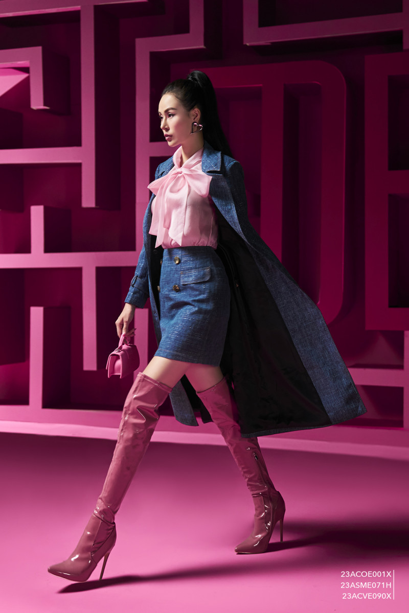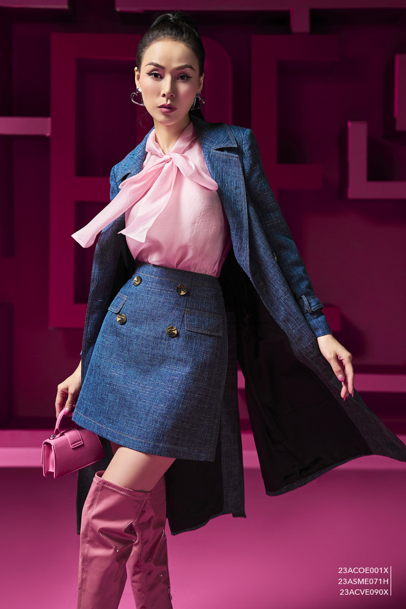 Chân váy mini, dáng A, có khuy và chi tiết nắp túi trang trí