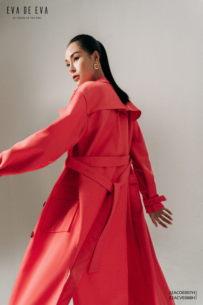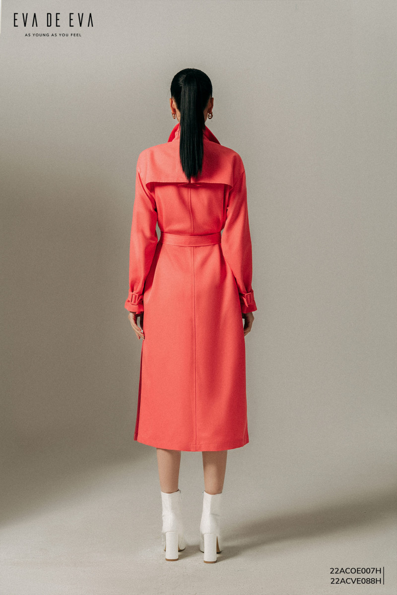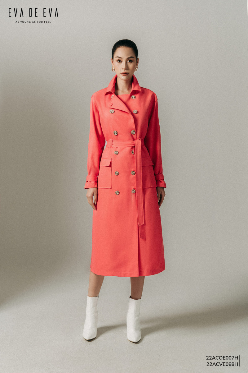 Áo khoác măng tô dáng dài qua gối, màu hồng, dáng suông