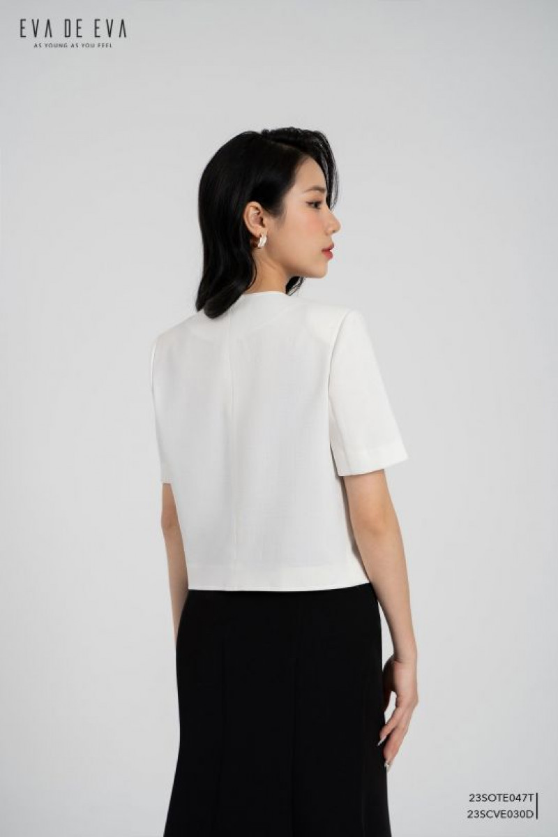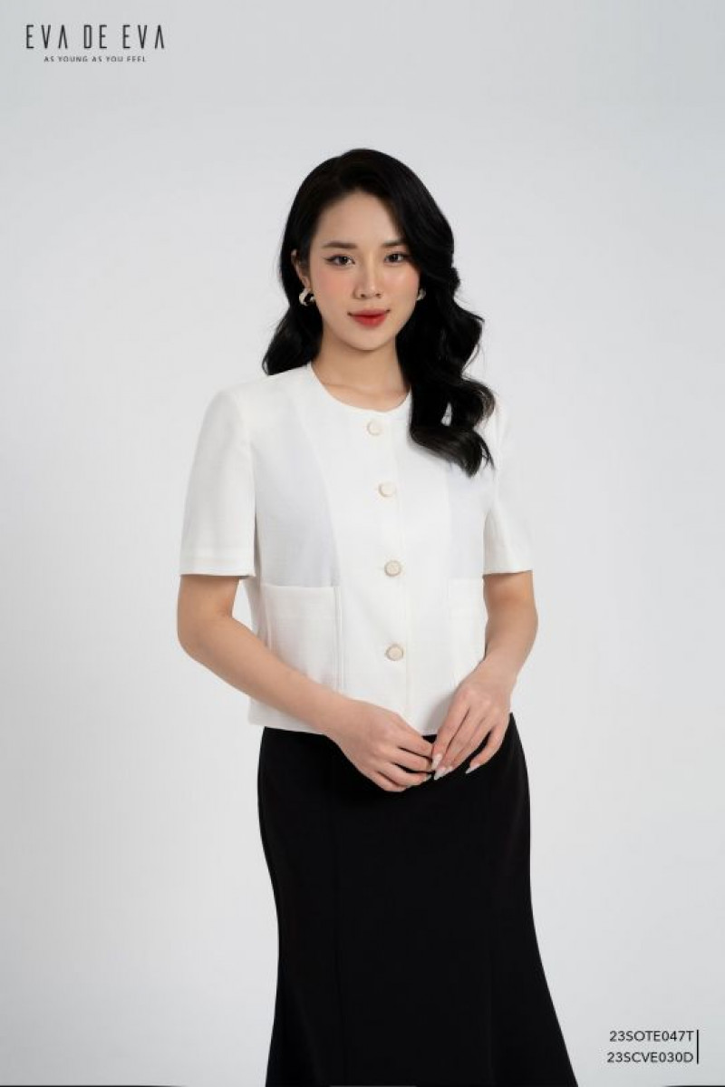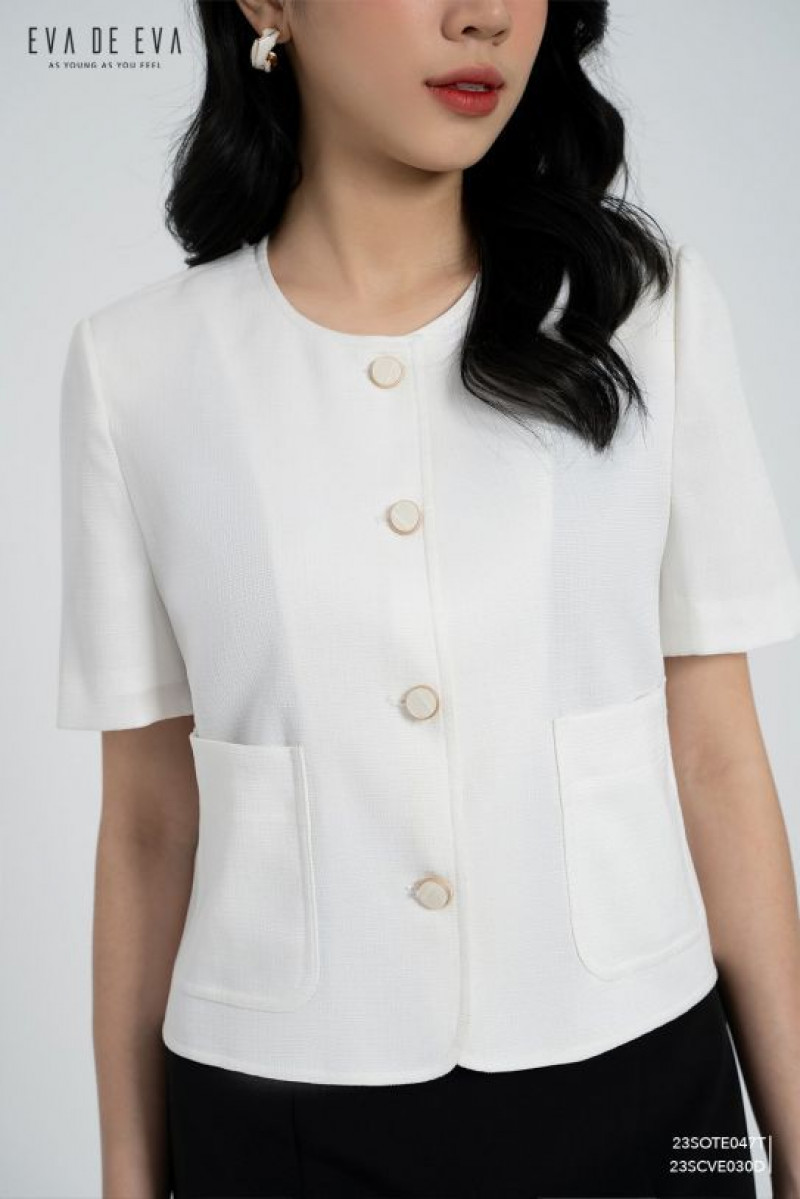 Áo blazer dáng suông ngắn, có chi tiết túi đựng tiện dụng