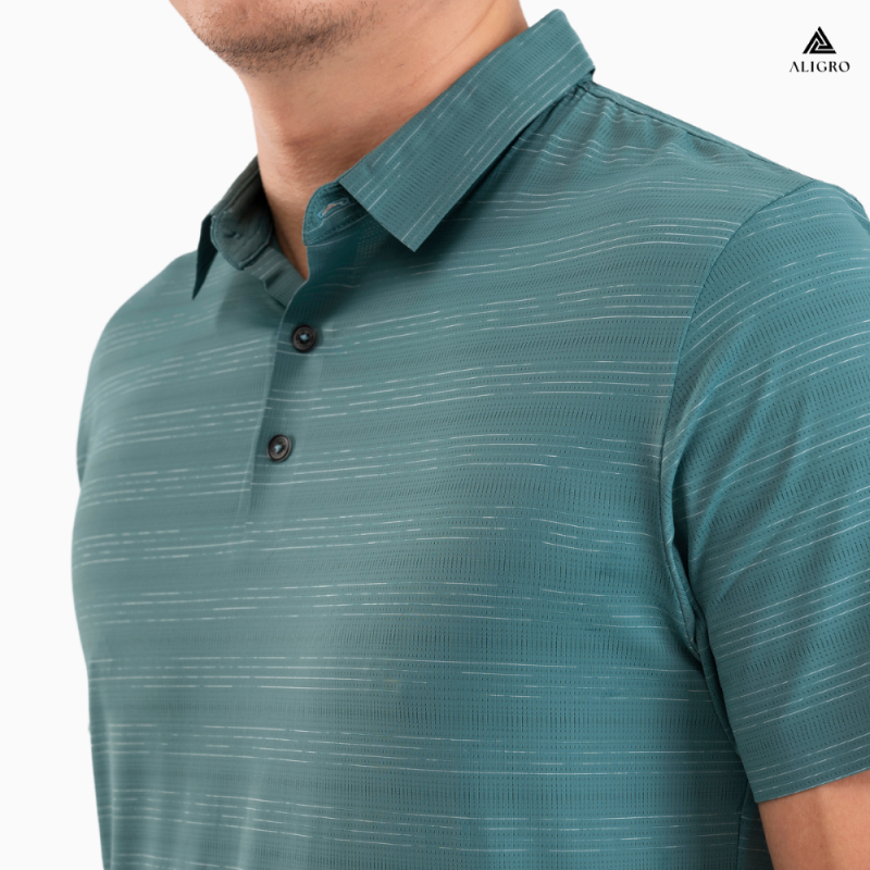 Áo polo golf nam ngắn tay ALIGRO chất vải coolmax kẻ ngang màu xanh rêu năng động ALGPLO118