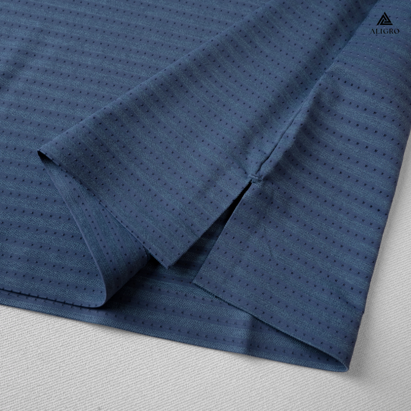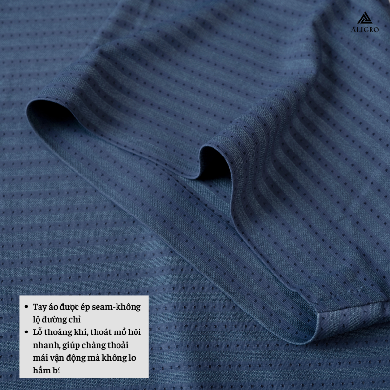 Áo polo golf nam ngắn tay ALIGRO chất vải coolmax màu xanh dệt kẻ ngang năng động ALGPLO119