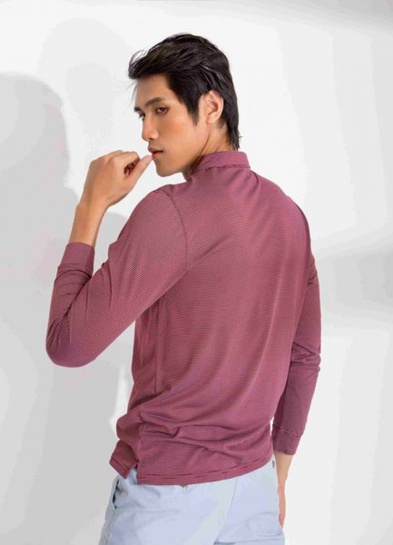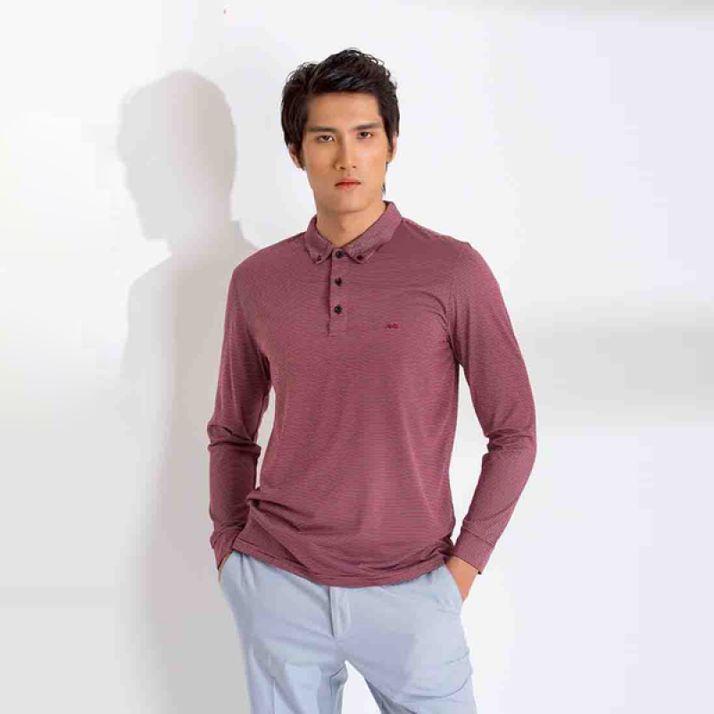 Áo thun nam dài tay kẻ ngang màu đỏ đô aligro ALGAPD029