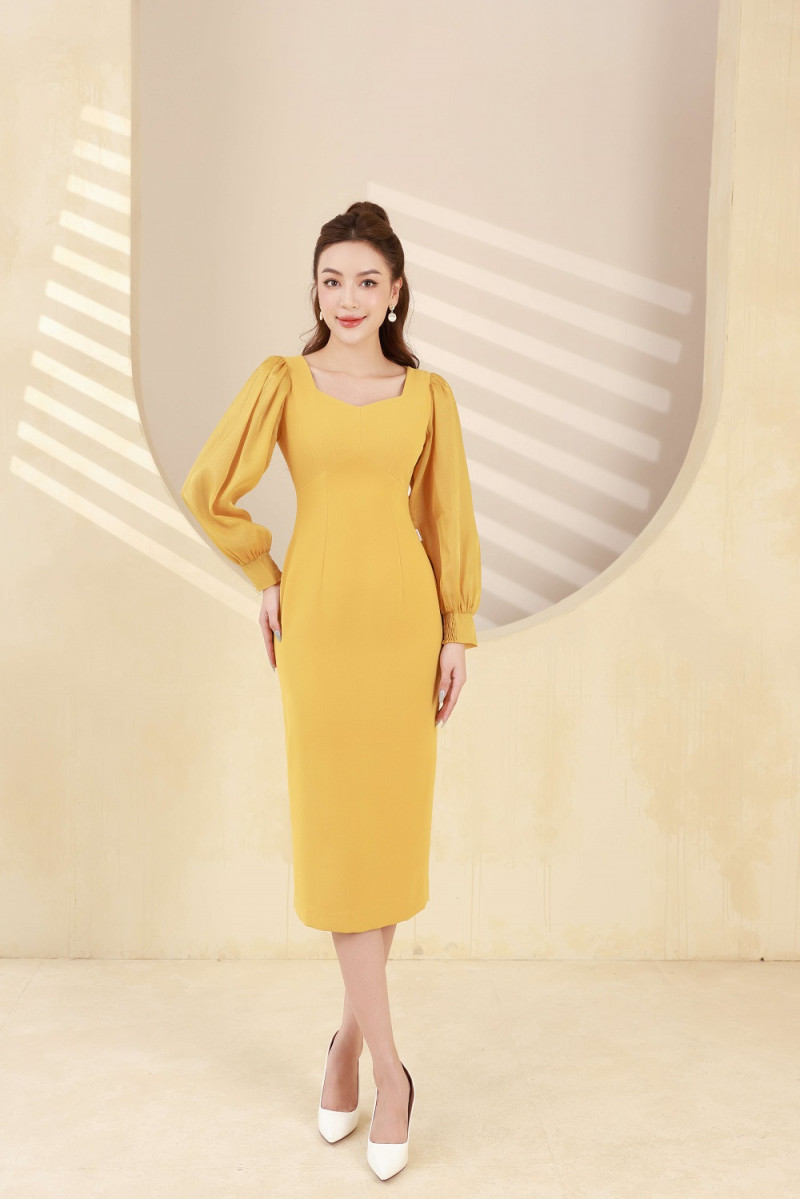 Đầm ôm tay phối họa tiết