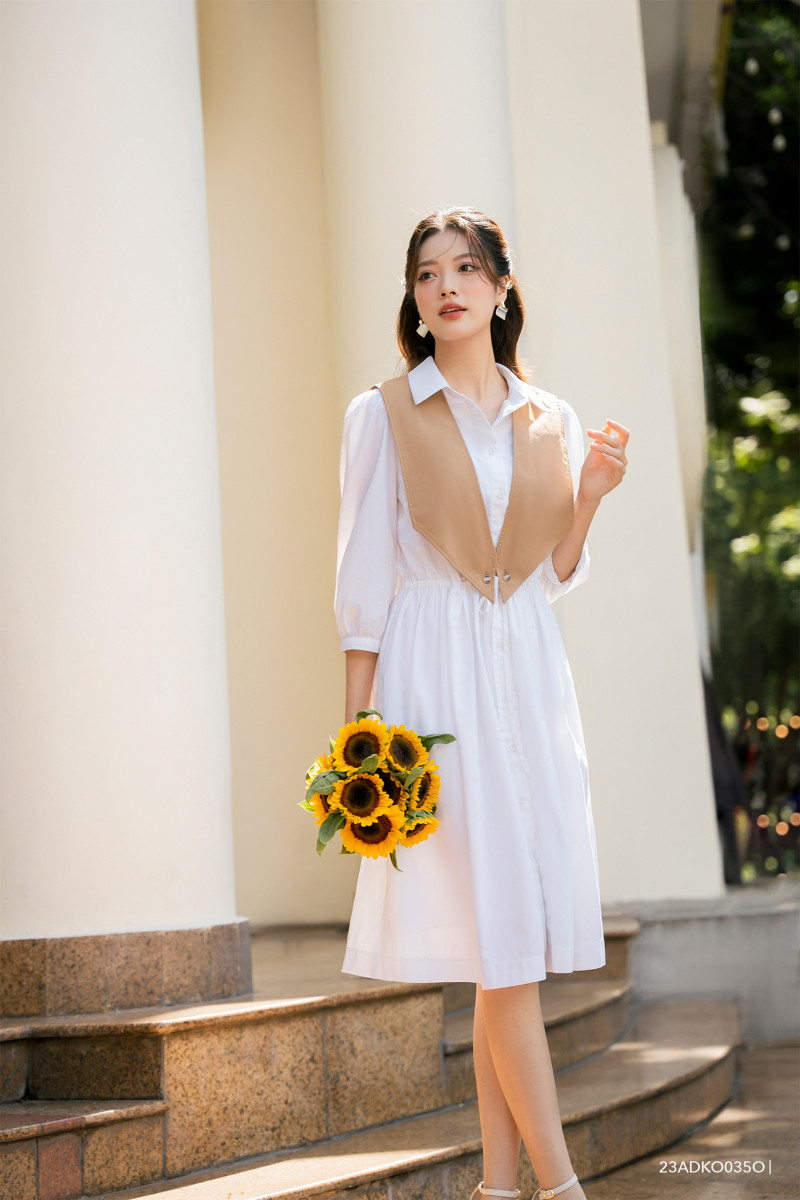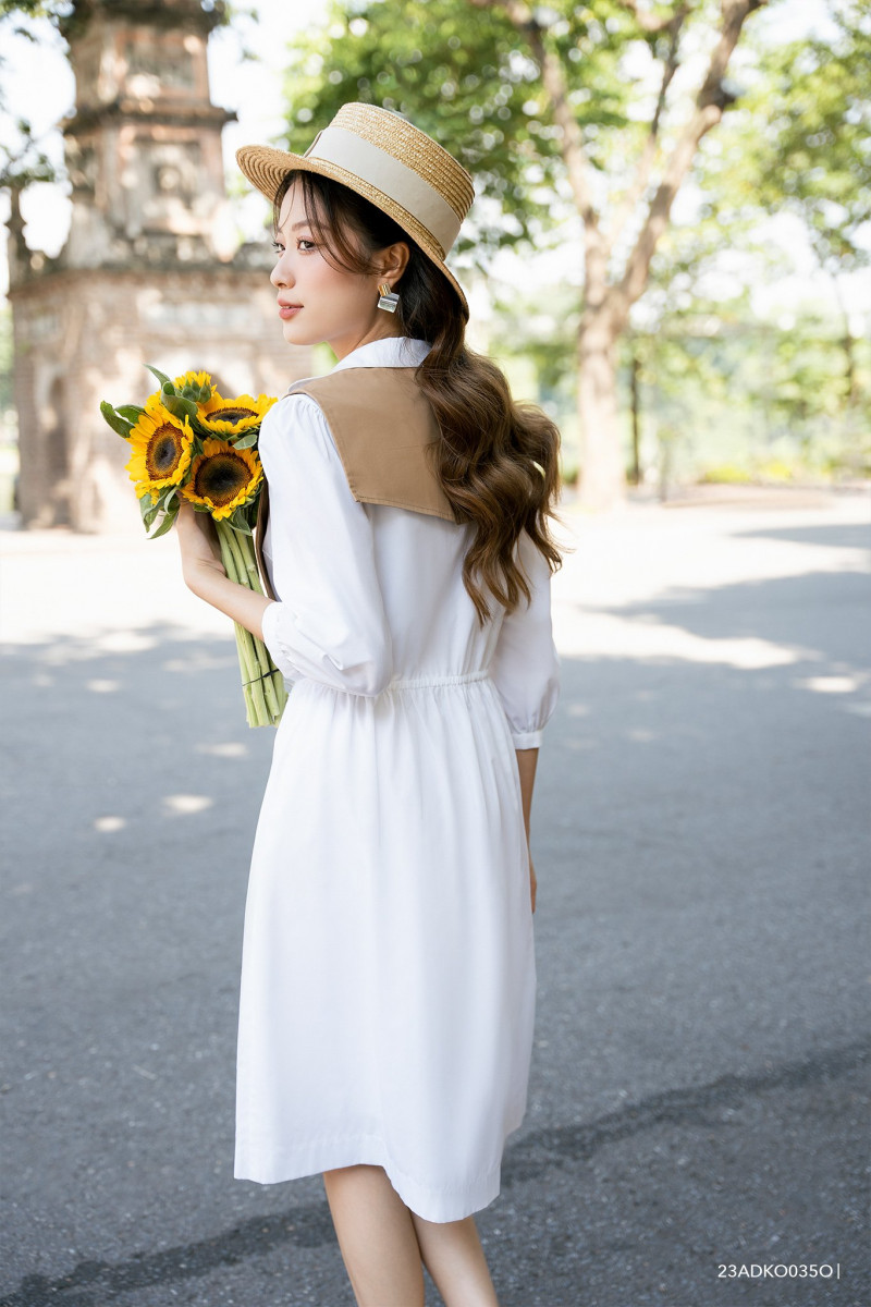 Đầm sơ mi, dáng xòe, có chi tiết vạt phối màu cách điệu