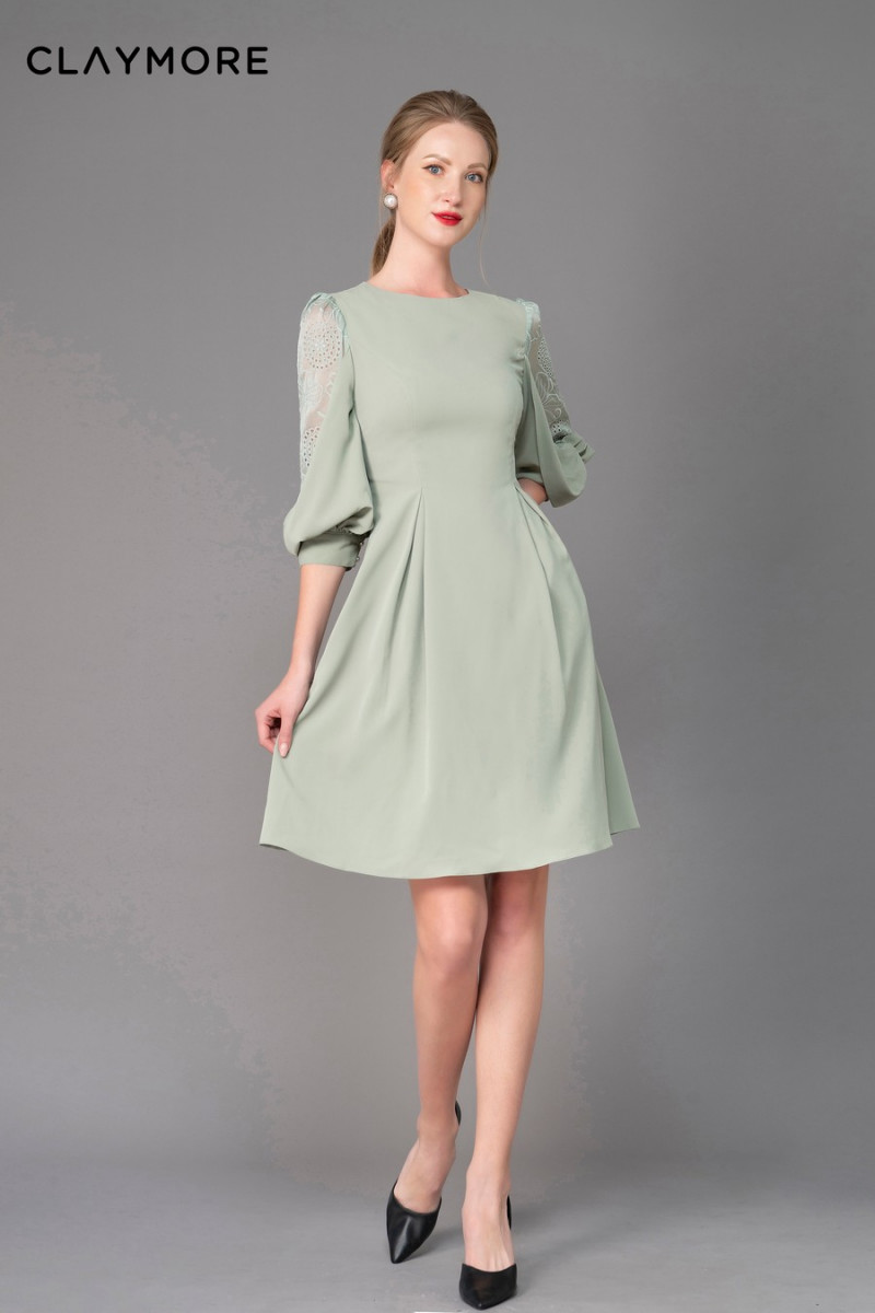 Đầm tay xẻ phồng phối ren-F320W12052C