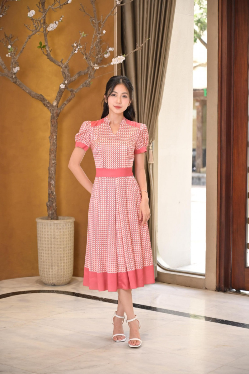Đầm xòe họa tiết kẻ-CDX2S3F04235