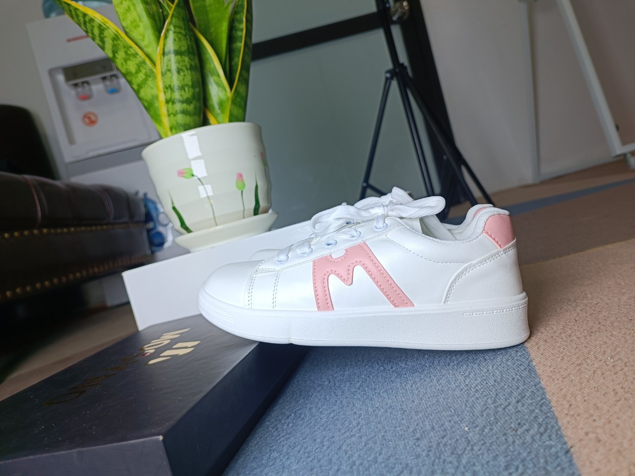 Đôi giày thể thao nữ chữ M màu hồng là sự lựa chọn tinh tế và cá tính cho phái đẹp. Với chất liệu chủ yếu là da tổng hợp hoặc vải dệt, giày đảm bảo sự thoải mái và độ bền trong suốt thời gian sử dụng. Thiết kế hiện đại với chữ M nổi bật trên thân giày, tạo điểm nhấn thời trang độc đáo và phá cách. Đế giày được thiết kế để giảm chấn động và cung cấp độ bám tốt, phù hợp cho mọi hoạt động từ đi bộ đến thể thao nhẹ nhàng. Lớp đệm ở đế giày giúp cân bằng và hỗ trợ cho đôi chân, mang lại cảm giác êm ái và thoải mái suốt cả ngày dài. Đây là sản phẩm thích hợp cho những phụ nữ yêu thích sự nữ tính và muốn tỏa sáng với phong cách thời trang đầy cá tính.