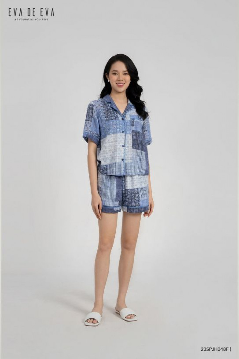 Set Pyjamas, áo ngắn tay kết hợp quần ngắn mát mẻ, họa tiết trẻ trung.